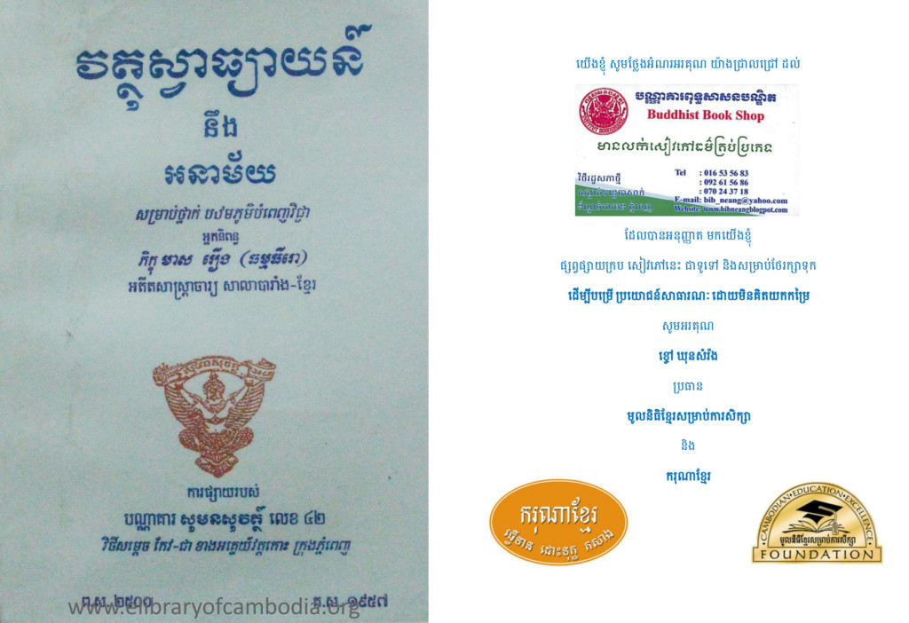 វត្ថុស្វាធ្យាយន៍ នឹង អនាម័យ សម្រាប់ថ្នាក់ បឋមភូមិបំពេញវិជ្ជា