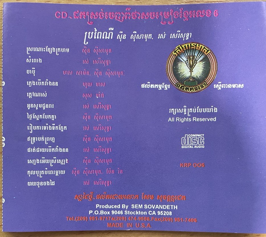 - ចេញផ្សាយជាស៊ីឌី (CD) ដោយផលិតកម្ម រស្មីពានមាស (KRP006) - ថ្ងៃស្អែកបែកគ្នា- CD - ក្របមុខ - ក្របក្រោយ