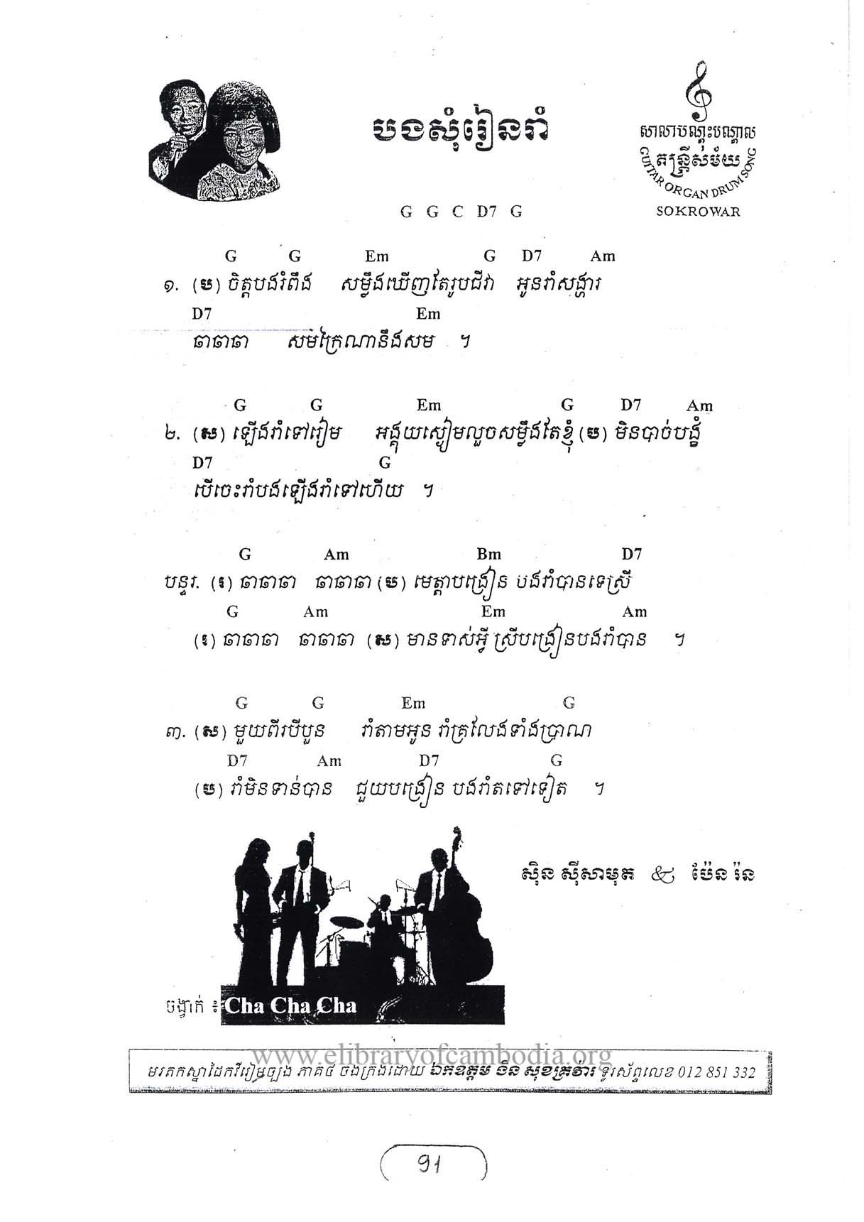 ១​ – (ប )  ចិត្តបងរំពឹង សម្លឹងឃើញតែរូបជីវ៉ា អូនរាំសង្ហា ចា​​ ចា ចា សមក្រៃណានឹងសម។