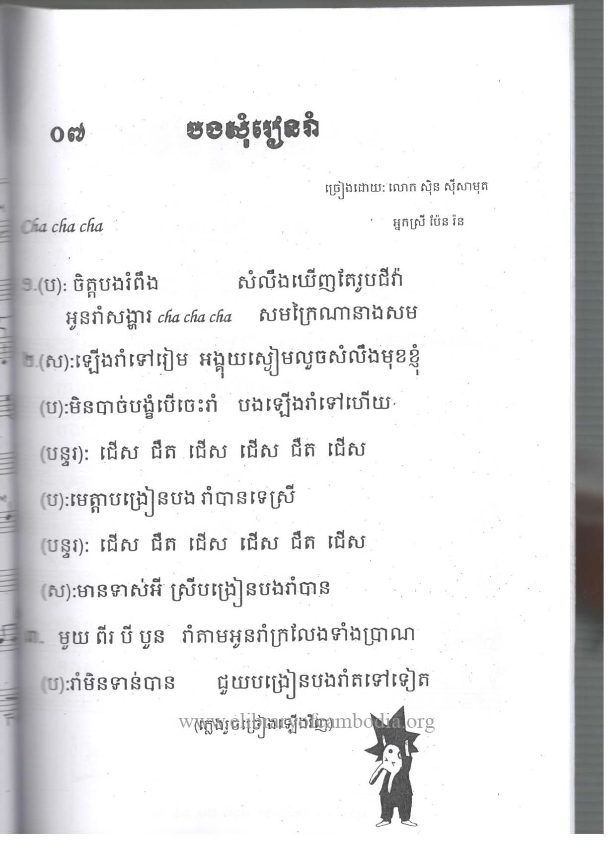 • យើងមានអក្សរភ្លេង​ ដកស្រង់ចេញពីសៀវភៅ មរតចម្រៀងភាគ២- បងសុំរៀនរាំ-អក្សរភ្លេង