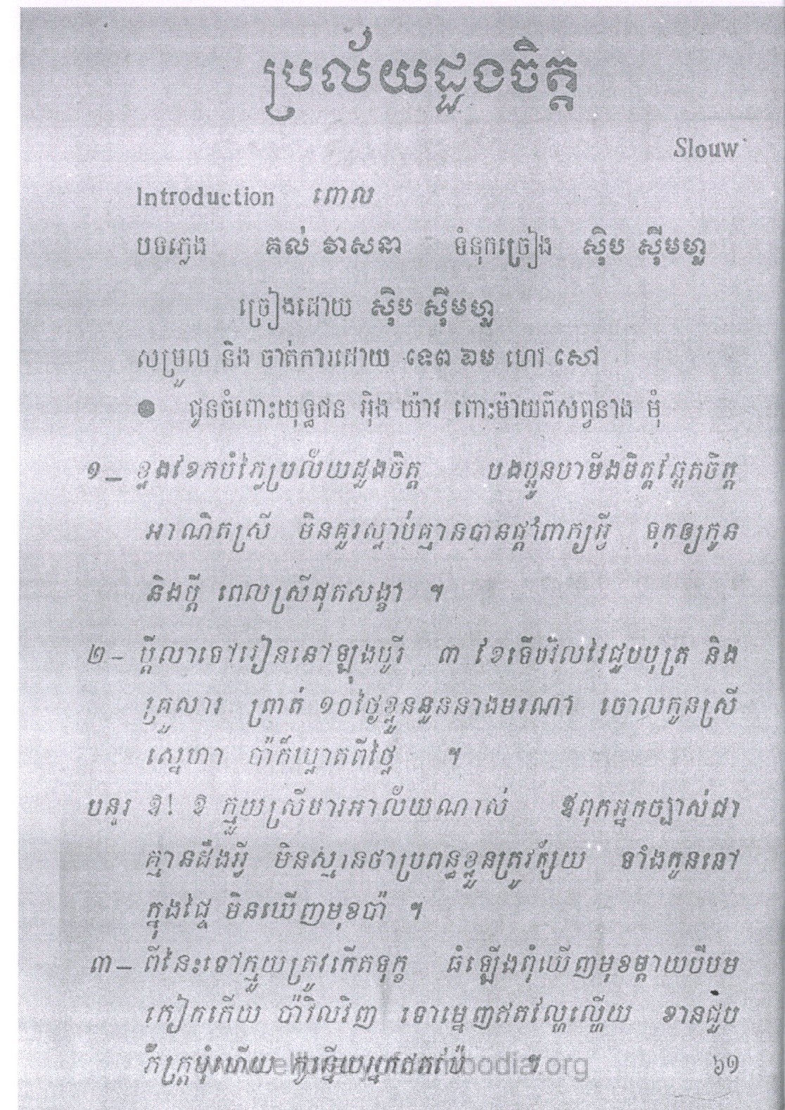 - យើងមានអត្ថបទ ដកស្រង់ចេញពីសៀវភៅ ប្រជំុតន្ត្រីសម័យ - ក្របមុខ ទំព័រទី ៦១