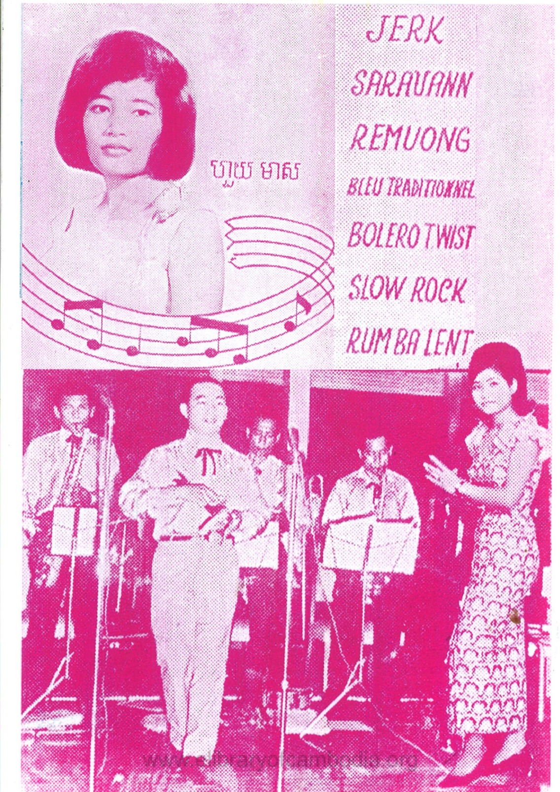 ព្រមជាមួយគ្នាមានកាសែ្សតចម្រៀង (Cassette) ដូចជា កាស្សែត ពពកស White Cloud កាស្សែត ពស់មាស កាស្សែត ច័ន្ទឆាយា កាស្សែត ថាសមាស កាស្សែត ពេងមាស កាស្សែត ភ្នំពេជ្រ កាស្សែត មេខ្លា កាស្សែត វត្តភ្នំ កាស្សែត វិមានឯករាជ្យ កាស្សែត ស៊ីន ស៊ីសាមុត កាស្សែត អប្សារា កាស្សែត សាឃូរ៉ា និង reel to reel tape ក្នុងជំនាន់នោះ អ្នកចម្រៀង ប្រុសមានលោក ស៊ិន ស៊ីសាមុត លោក ថេត សម្បត្តិ លោក សុះ ម៉ាត់ លោក យស អូឡារាំង លោក យ៉ង់ ឈាង លោក ពេជ្រ សាមឿន លោក គាង យុទ្ធហាន លោក ជា សាវឿន លោក ថាច់ សូលី លោក ឌុច គឹមហាក់ លោក យិន ឌីកាន លោក វ៉ា សូវី លោក ឡឹក សាវ៉ាត លោក ហួរ ឡាវី លោក វ័រ សារុន លោក កុល សែម លោក មាស សាម៉ន លោក អាប់ឌុល សារី លោក តូច តេង លោក ជុំ កែម លោក អ៊ឹង ណារី លោក អ៊ិន យ៉េង លោក ម៉ុល កាម៉ាច លោក អ៊ឹម សុងសឺម លោក មាស ហុកសេង លោក លីវ តឹក និងលោក យិន សារិន ជាដើម។