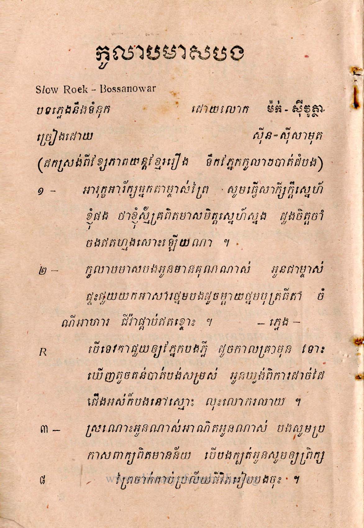 - យើងមានអត្ថបទ ដកស្រង់ចេញពីសៀវភៅ ប្រជុំចំរៀងភាពយន្ត ១៤០បទ ទំព័រទី ៨