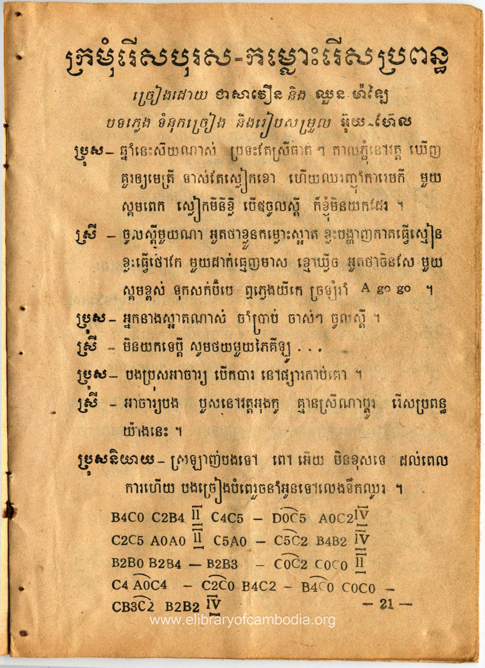 • យើងមានអត្ថបទ និងអក្សរភ្លេង​ ដកស្រង់ចេញពីសៀវភៅ ចម្រៀងសម័យឆ្នាំ72 ទំព័រទី​ ២១