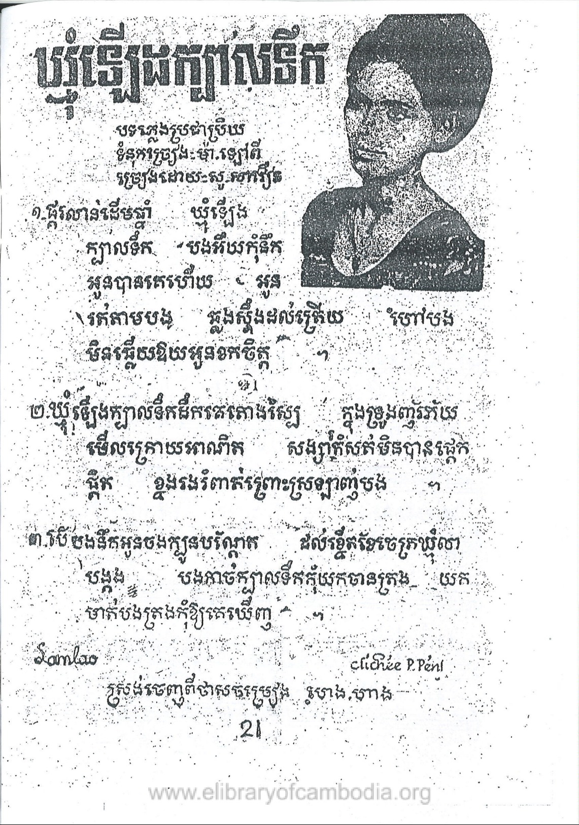 - យើងមានអត្ថបទ និងអក្សរភ្លេង ដកស្រង់ចេញពីសៀវភៅចម្រៀង ចំរៀងសម័យ-ឃ្មុំឡើងក្បាលទឺក-អក្សរភ្លេង