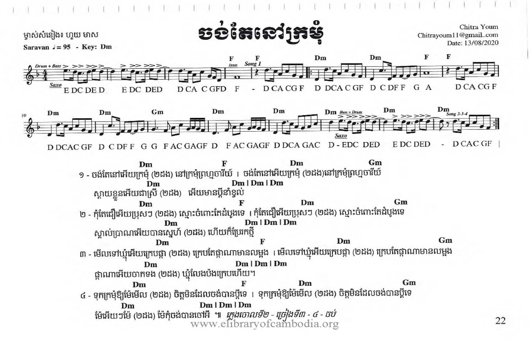 - ចេញផ្សាយនៅលើសៀវភៅ រៀនលេងបទចម្រៀងដោយខ្លួនឯង- ចង់តែនៅក្រមុំ