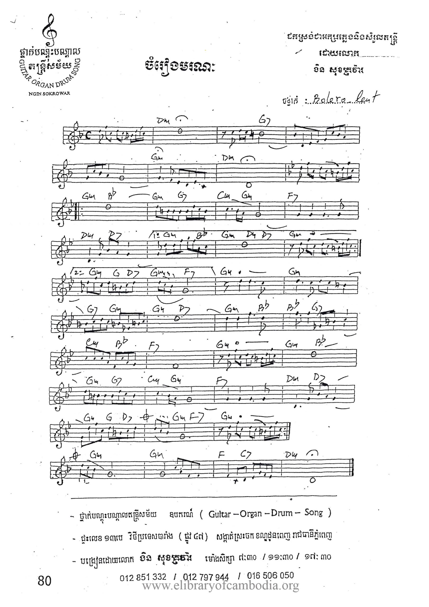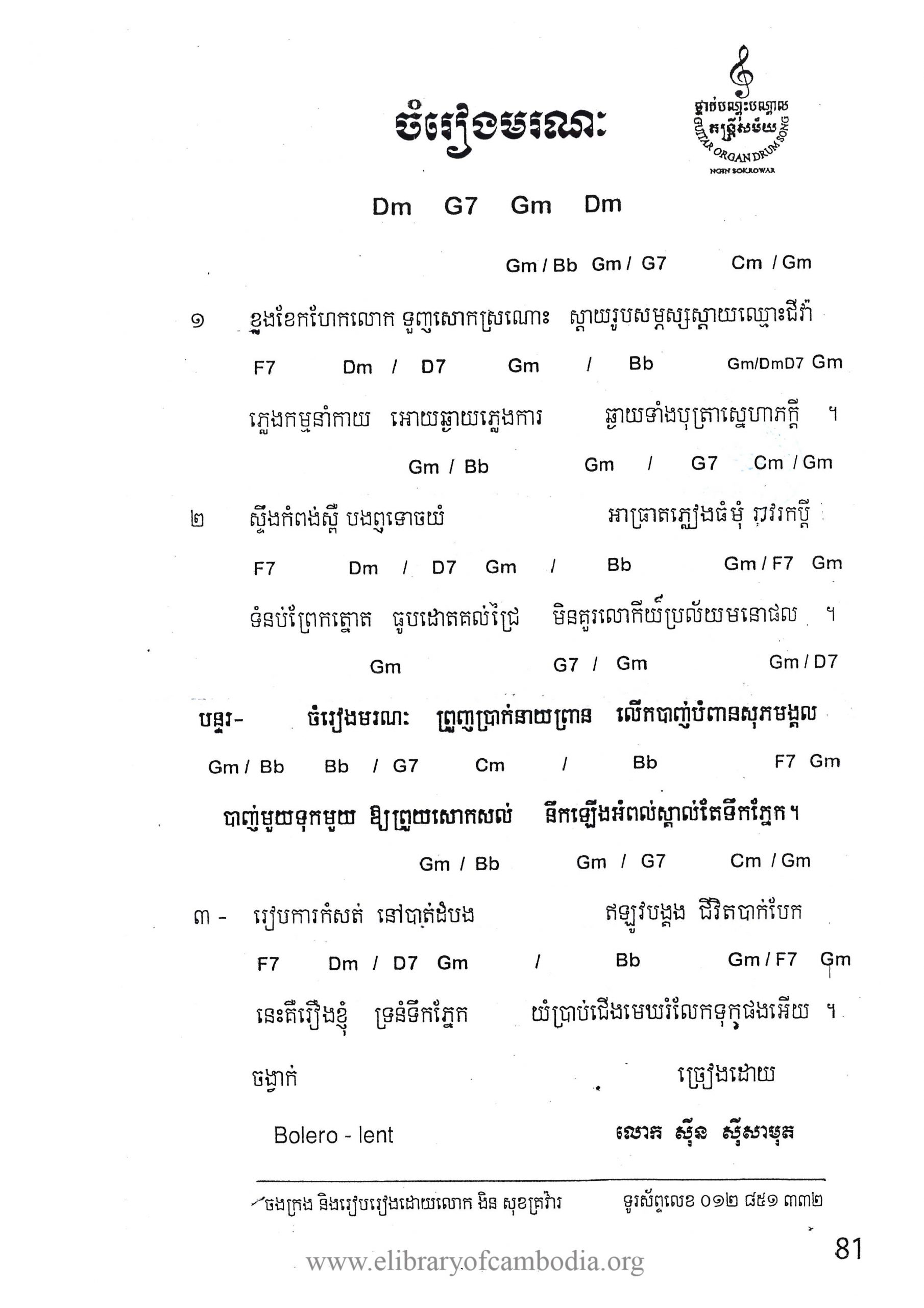 • យើងមានអត្ថបទ និងអក្សរភ្លេង​ ដកស្រង់ចេញពីសៀវភៅ មរតកស្នាដៃកវីរៀមច្បង ភាគទី 3 ទំព័រ ៨០ និង ៨១
