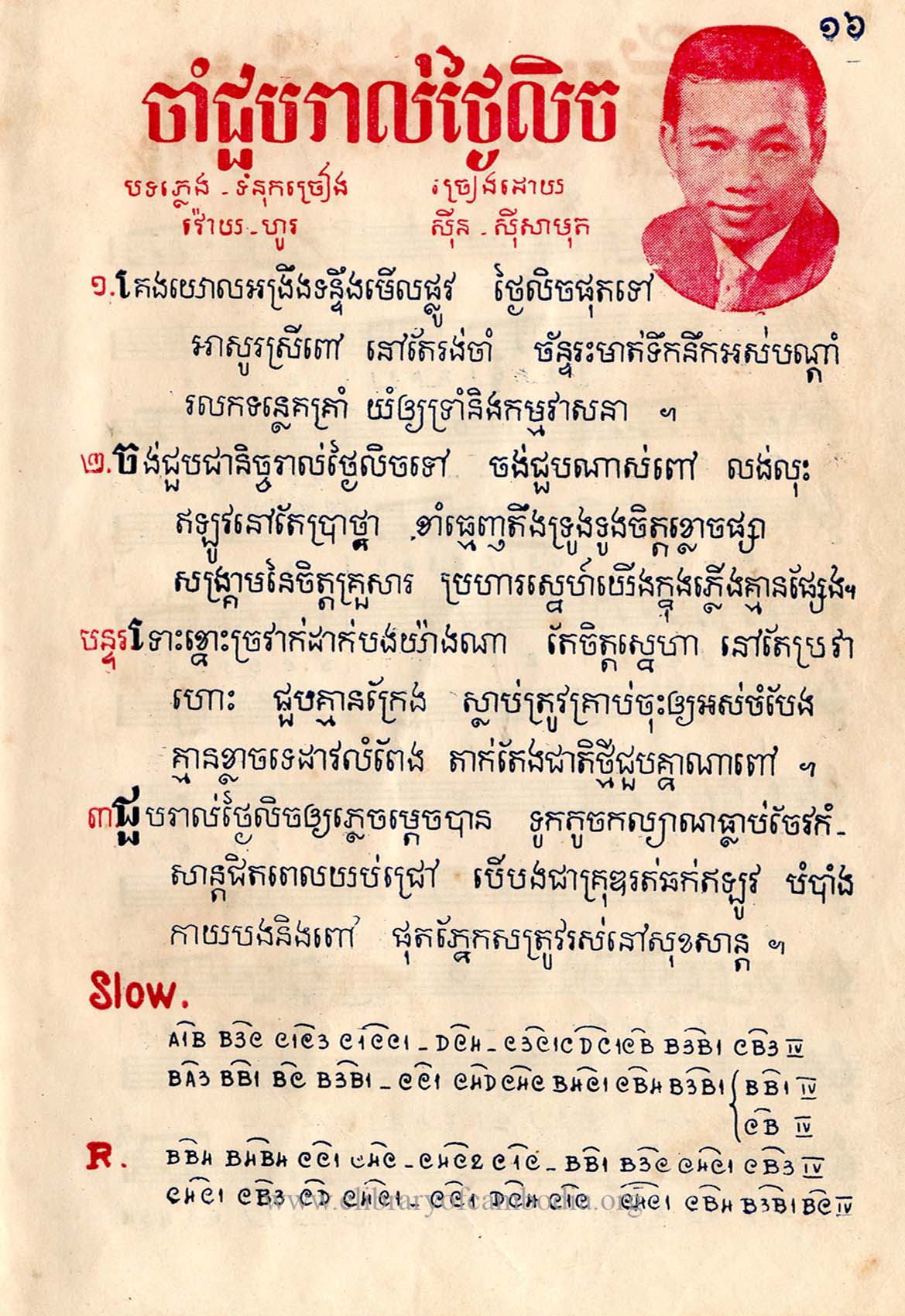 - យើងមានអត្ថបទ និងអក្សរភ្លេង ដកស្រង់ចេញពីសៀវភៅ មិត្ត ស៊ីន ស៊ីសាមុត និង ប៉ែន រ៉ន ទំព័រទី ១៦