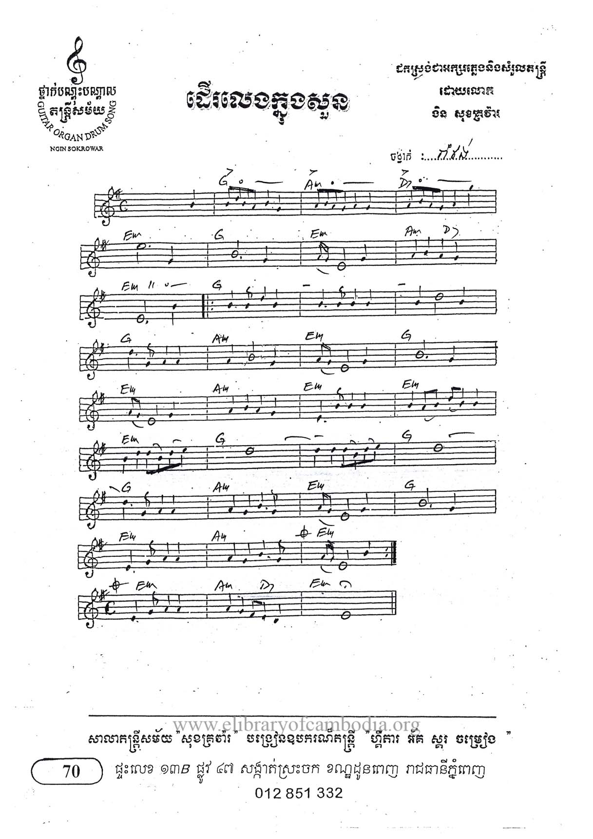 • ដើរលេងក្នុងសួន ជាបទចម្រៀងដើម មុនថ្ងៃ១៧ មេសា ១៩៧៥ ច្រៀងដំបូង ដោយ អ៊ឹម សុងសឺម និងហួយ មាស