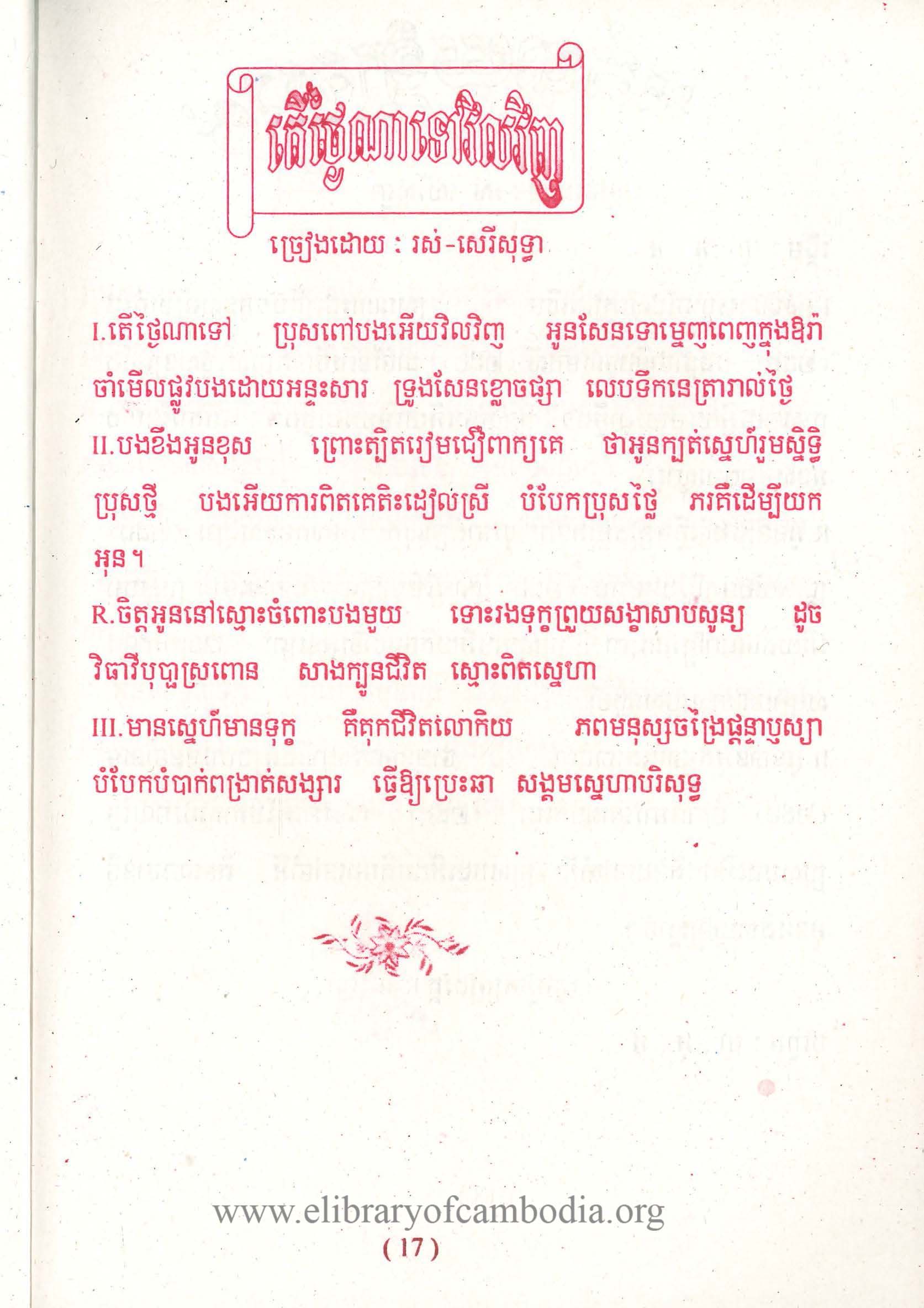 ១ តើថ្ងៃណាទៅ ប្រុសពៅបងអើយវិលវិញ អូនសែនទោម្នេញពេញក្នុងឱរា