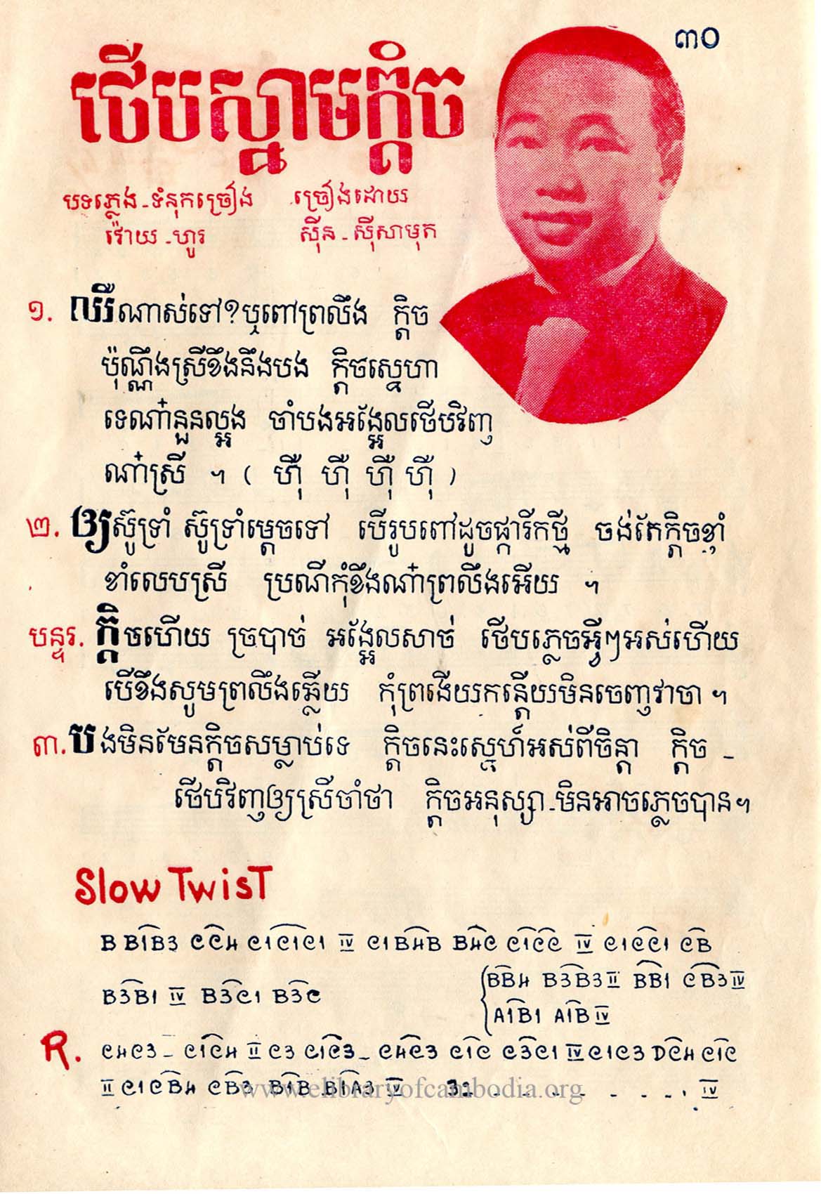 - យើងមានអត្ថបទ និងអក្សរភ្លេង ដកស្រង់ចេញពីសៀវភៅ ប្រជុំចម្រៀងពិសេស - ទំព័រទី ៣០