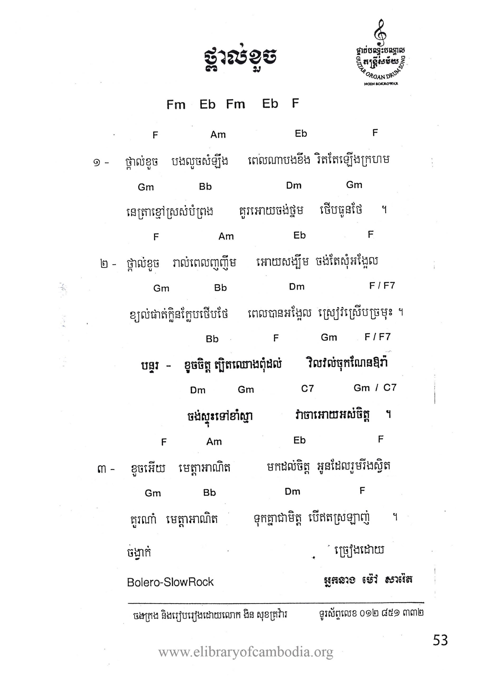 • យើងមានអត្ថបទ និងអក្សរភ្លេង​ ដកស្រង់ចេញពីសៀវភៅចម្រៀង មរតកស្នាដៃកវីរៀមច្បង ភាគទី 3-ថ្ពាល់ខួច-អក្សរភ្លេង