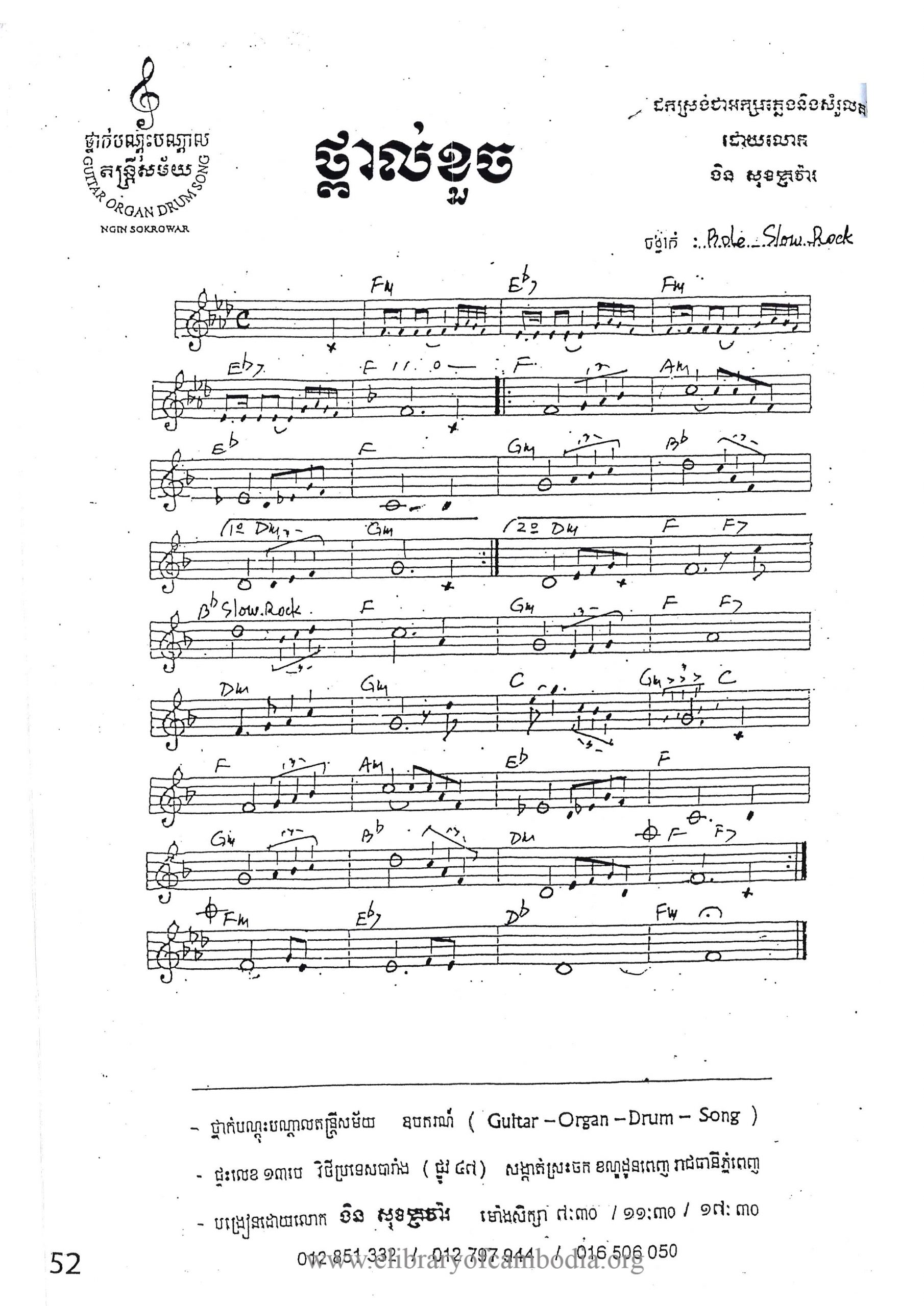 • ចេញផ្សាយនៅលើសៀវភៅចម្រៀង តន្ត្រីចន្ទឆាយា និង តន្ត្រីវត្តភ្នំ - ថ្ពាល់ខួច