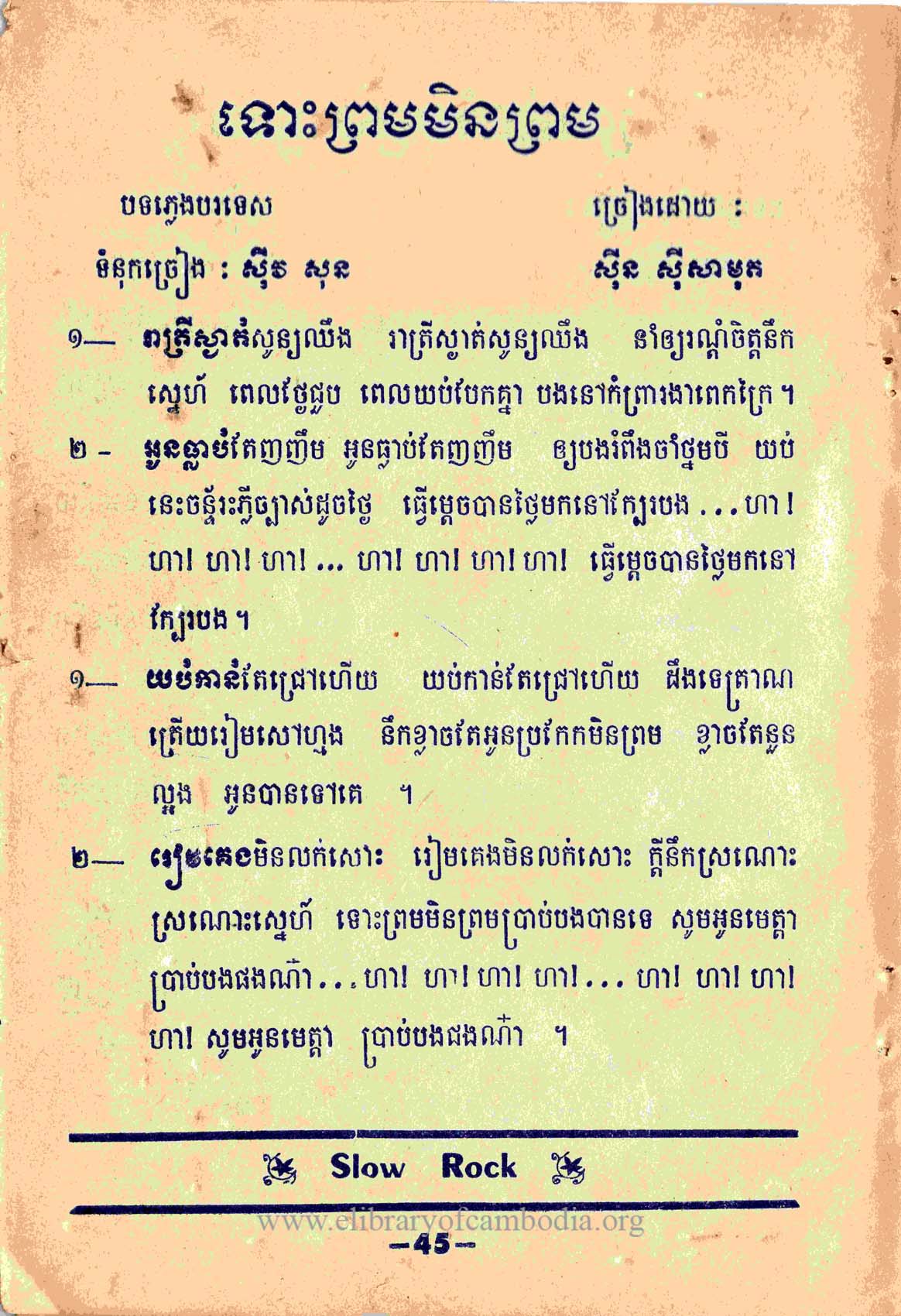 - ចេញផ្សាយនៅលើសៀវភៅចម្រៀង ចម្រៀងបំភ្លេចមិនបាន - ក្របមុខ