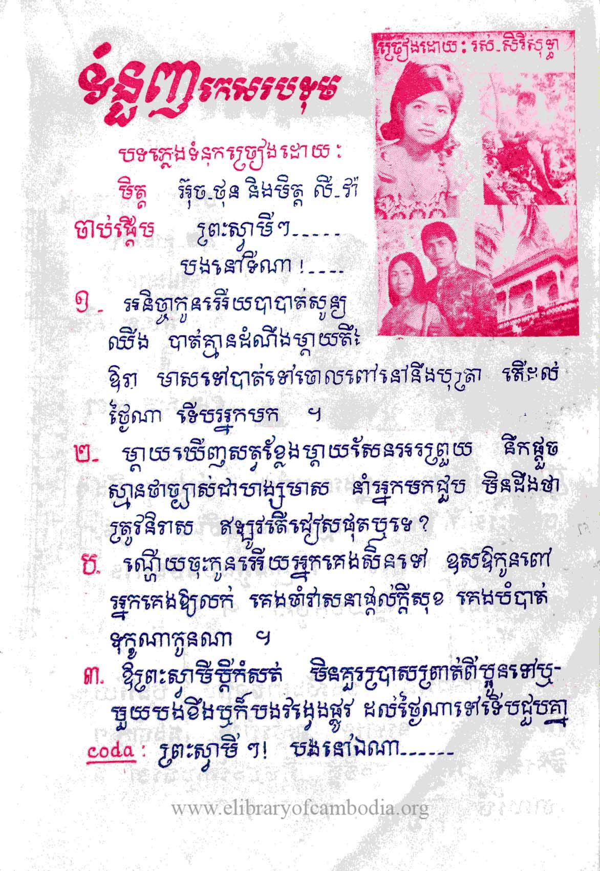 - បទភ្លេង និង ទំនុកច្រៀងដោយ អ៊ុច ថុន និង លី វ៉ា