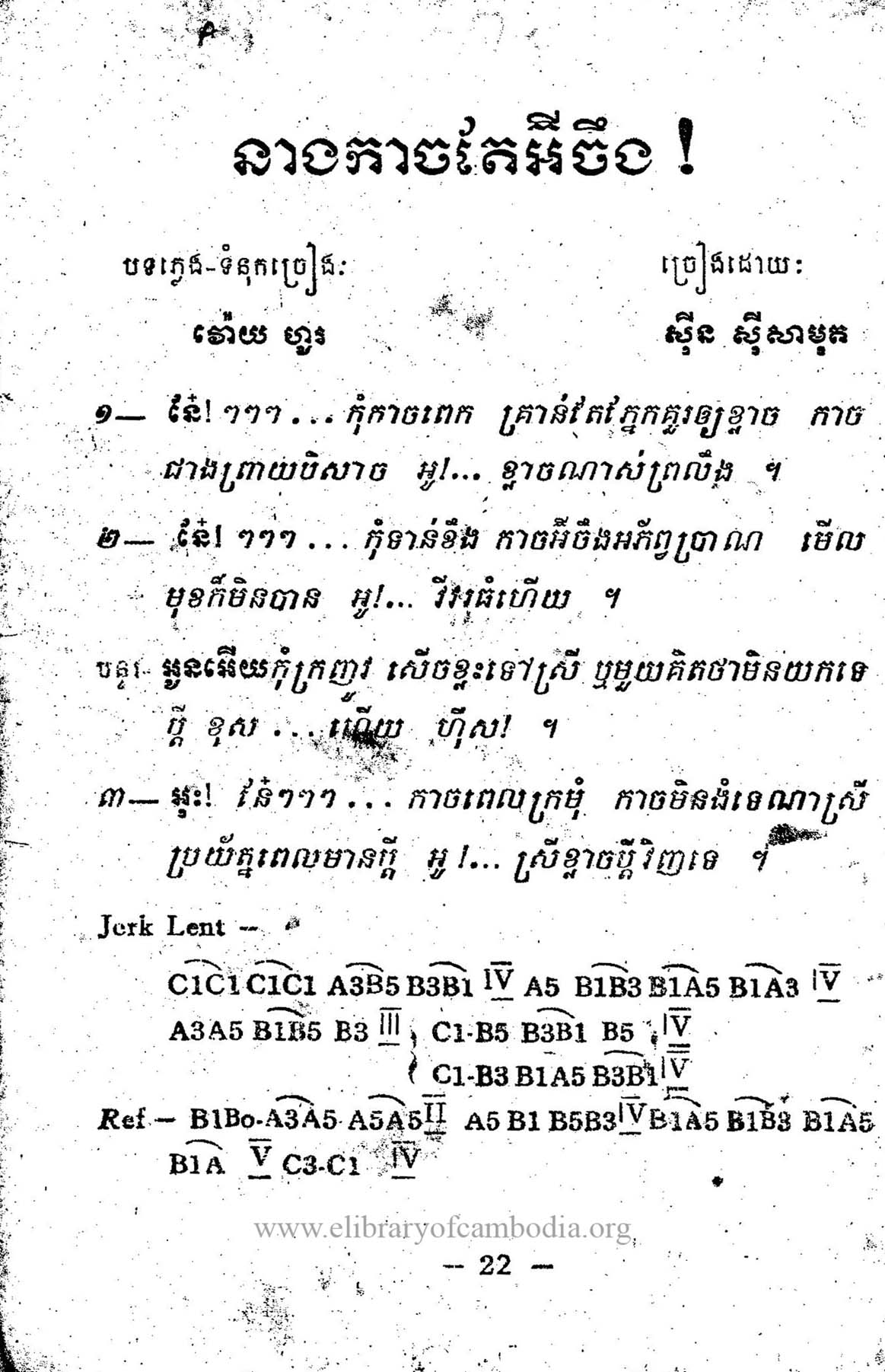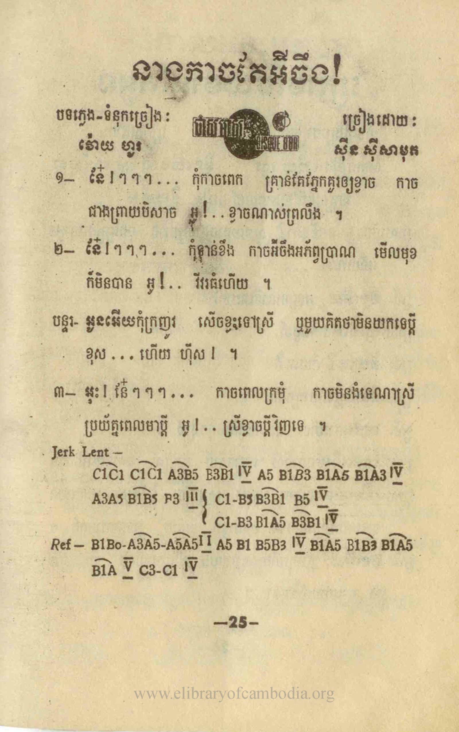 - យើងមានអត្ថបទ និងអក្សរភ្លេង ដកស្រង់ចេញពីសៀវភៅចម្រៀងដែលខ្ញុំស្រឡាញ់ ទំព័ទី២៥