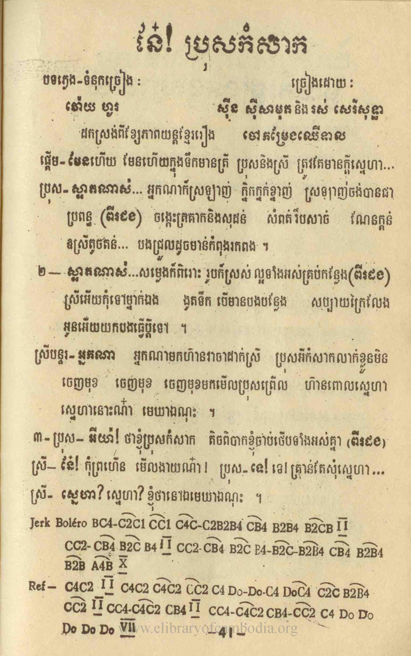 - យើងមានអត្ថបទ និងអក្សរភ្លេង ដកស្រង់ចេញពីសៀវភៅ ចម្រៀងដែលខ្ញុំស្រឡាញ់ - នែ៎ ! ប្រុសកំសាក - អក្សរភ្លេង