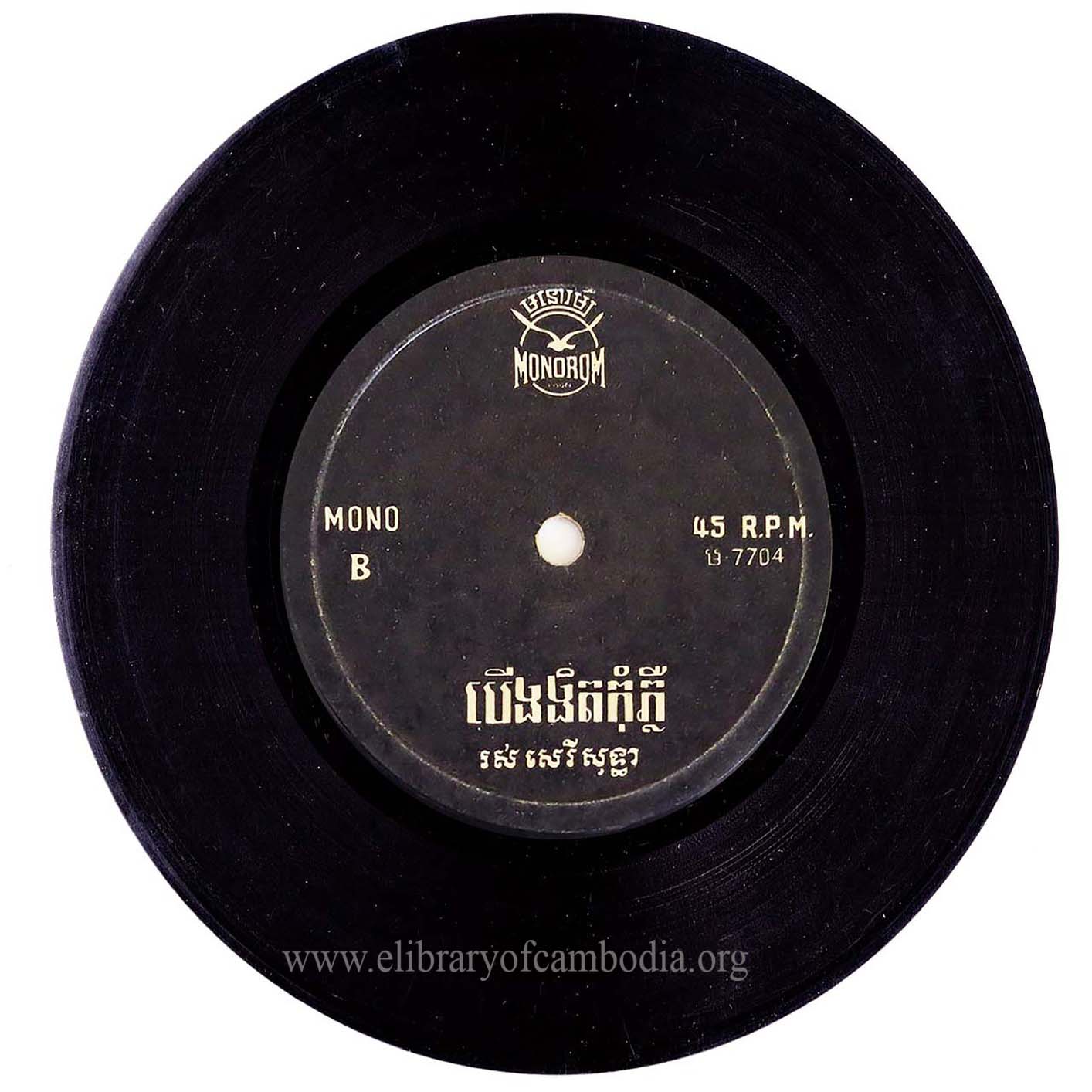 យើងខ្ញុំមានបំណងរក្សាសម្បត្តិខ្មែរទុកនៅលើគេហទំព័រ www.elibraryofcambodia.org នេះ ព្រមទាំងផ្សព្វផ្សាយសម្រាប់បម្រើជាប្រយោជន៍សាធារណៈ ដោយឥតគិតរក និងយកកម្រៃ នៅមុនថ្ងៃទី១៧ ខែមេសា ឆ្នាំ១៩៧៥ ចម្រៀងខ្មែរបានថតផ្សាយលក់លើថាសចម្រៀង 45 RPM 33 ½ RPM 78 RPM​ ដោយផលិតកម្ម ថាស កណ្ដឹងមាស ឃ្លាំងមឿង ចតុមុខ ហេងហេង សញ្ញាច័ន្ទឆាយា នាគមាស បាយ័ន ផ្សារថ្មី ពស់មាស ពែងមាស ភួងម្លិះ ភ្នំពេជ្រ គ្លិស្សេ ភ្នំពេញ ភ្នំមាស មណ្ឌលតន្រ្តី មនោរម្យ មេអំបៅ រូបតោ កាពីតូល សញ្ញា វត្តភ្នំ វិមានឯករាជ្យ សម័យអាប៉ូឡូ ​​​ សាឃូរ៉ា ខ្លាធំ សិម្ពលី សេកមាស ហង្សមាស ហនុមាន ហ្គាណេហ្វូ​ អង្គរ Lac Sea សញ្ញា អប្សារា អូឡាំពិក កីឡា ថាសមាស ម្កុដពេជ្រ មនោរម្យ បូកគោ ឥន្ទ្រី Eagle ទេពអប្សរ ចតុមុខ ឃ្លោកទិព្វ ខេមរា មេខ្លា សាកលតន្ត្រី មេអំបៅ Diamond Columbo ហ្វីលិព Philips EUROPASIE EP ដំណើរខ្មែរ​ ទេពធីតា មហាធូរ៉ា ជាដើម​។