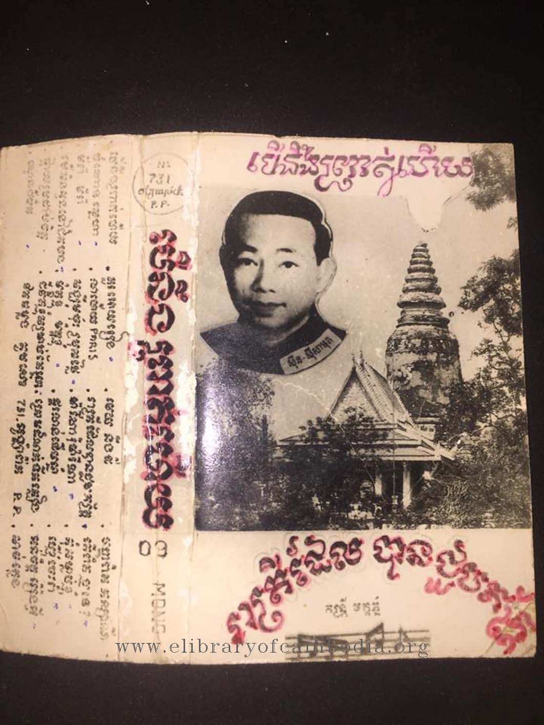 យើងខ្ញុំមានបំណងរក្សាសម្បត្តិខ្មែរទុកនៅលើគេហទំព័រ www.elibraryofcambodia.org នេះ ព្រមទាំងផ្សព្វផ្សាយសម្រាប់បម្រើជាប្រយោជន៍សាធារណៈ ដោយឥតគិតរក និងយកកម្រៃ នៅមុនថ្ងៃទី១៧ ខែមេសា ឆ្នាំ១៩៧៥ ចម្រៀងខ្មែរបានថតផ្សាយលក់លើថាសចម្រៀង 45 RPM 33 ½ RPM 78 RPM ដោយផលិតកម្ម ថាស កណ្ដឹងមាស ឃ្លាំងមឿង ចតុមុខ ហេងហេង សញ្ញាច័ន្ទឆាយា នាគមាស បាយ័ន ផ្សារថ្មី ពស់មាស ពែងមាស ភួងម្លិះ ភ្នំពេជ្រ គ្លិស្សេ ភ្នំពេញ ភ្នំមាស មណ្ឌលតន្រ្តី មនោរម្យ មេអំបៅ រូបតោ កាពីតូល សញ្ញា វត្តភ្នំ វិមានឯករាជ្យ សម័យអាប៉ូឡូ សាឃូរ៉ា ខ្លាធំ សិម្ពលី សេកមាស ហង្សមាស ហនុមាន ហ្គាណេហ្វូ អង្គរ Lac Sea សញ្ញា អប្សារា អូឡាំពិក កីឡា ថាសមាស ម្កុដពេជ្រ មនោរម្យ បូកគោ ឥន្ទ្រី Eagle ទេពអប្សរ ចតុមុខ ឃ្លោកទិព្វ ខេមរា មេខ្លា សាកលតន្ត្រី មេអំបៅ Diamond Columbo ហ្វីលិព Philips EUROPASIE EP ដំណើរខ្មែរ ទេពធីតា មហាធូរ៉ា ជាដើម។