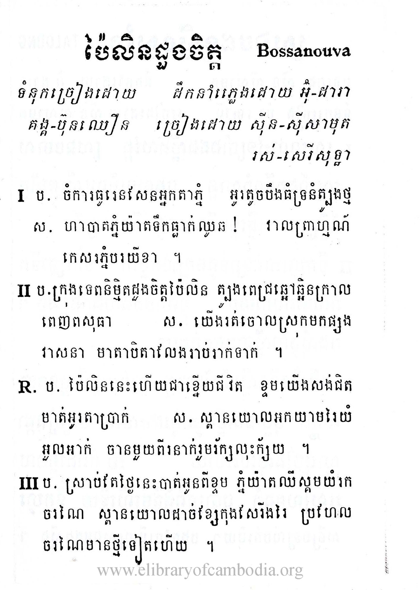 - ប៉ៃលិនដួងចិត្ត ជាបទចម្រៀងដេីម មុនថ្ងៃ១៧ មេសា ១៩៧៥ ច្រៀងដំបូង ដោយ សុីន ស៊ីសាមុតនិង រស់ សេរីសុទ្ធា