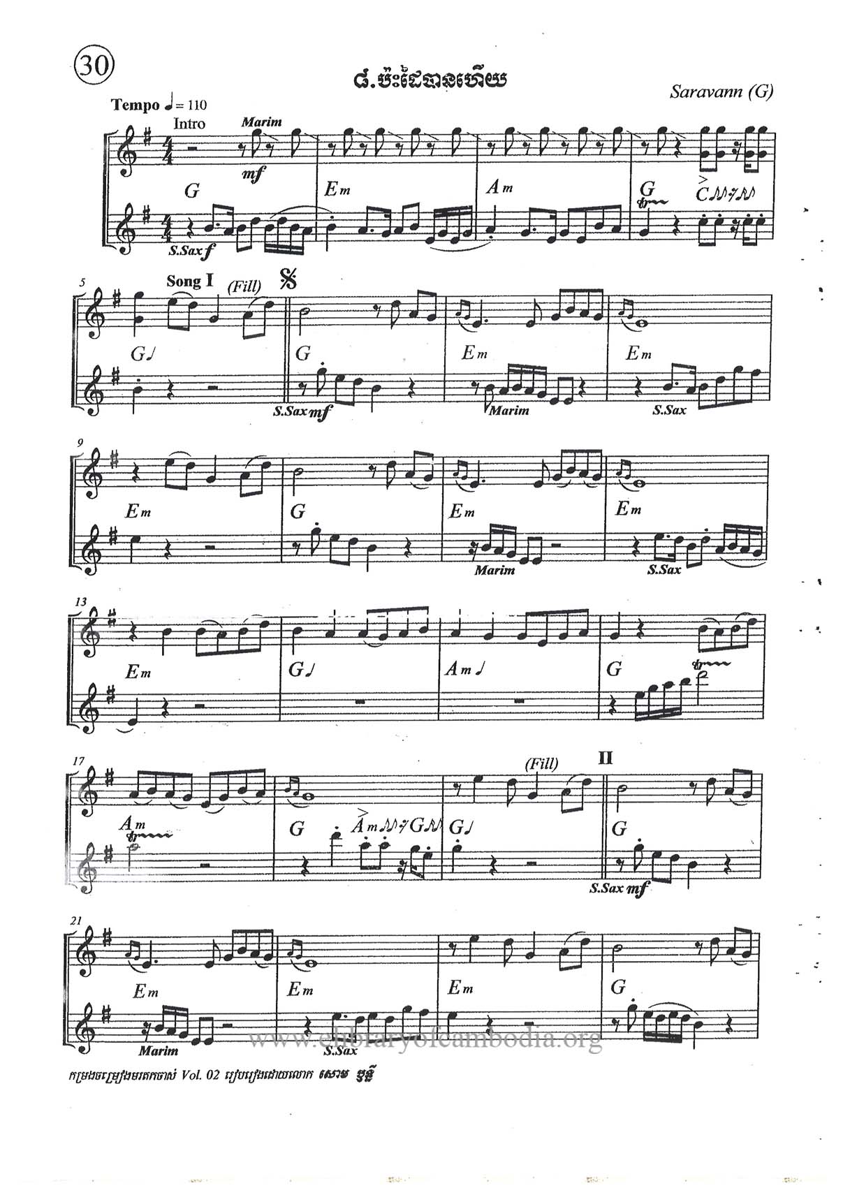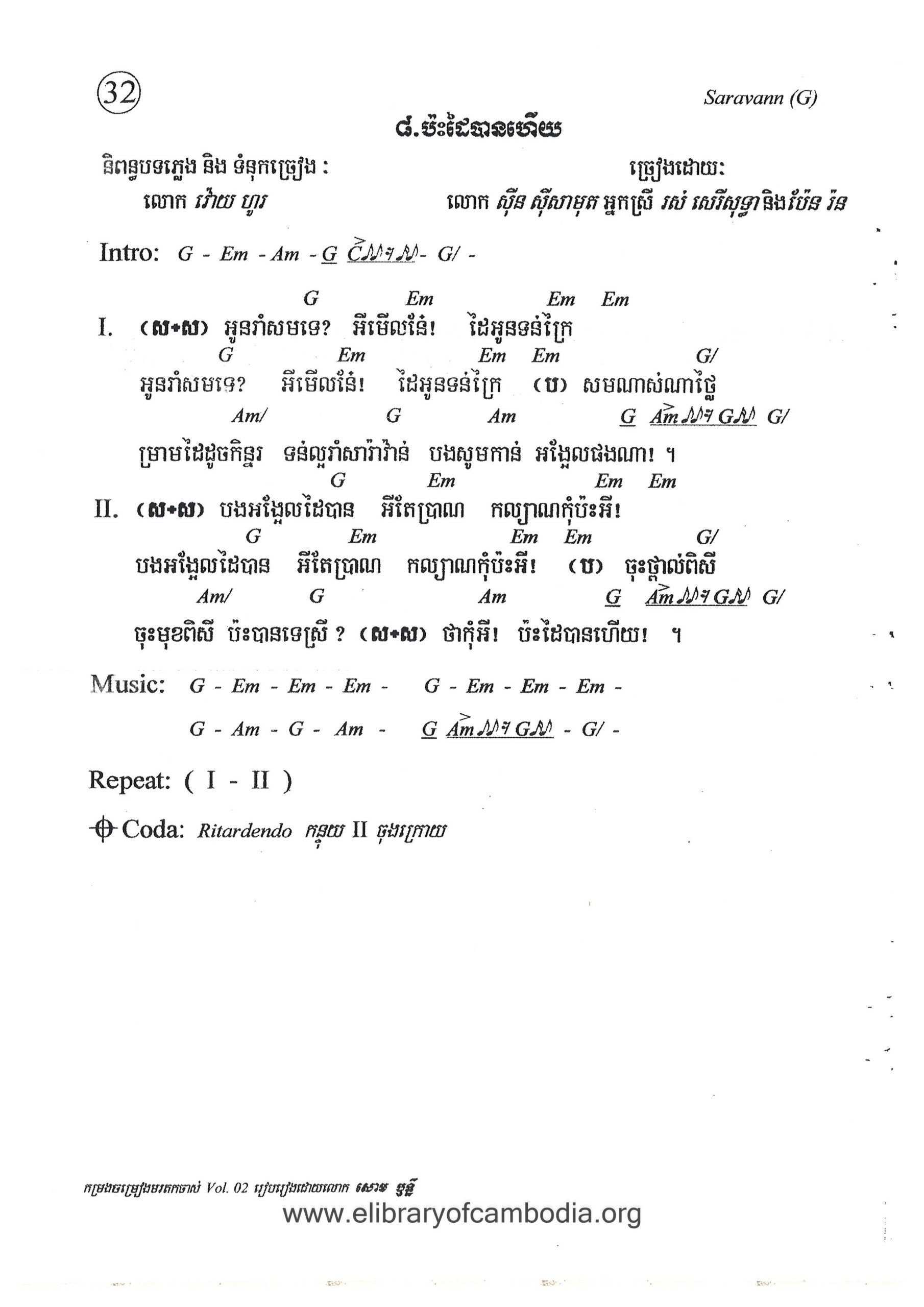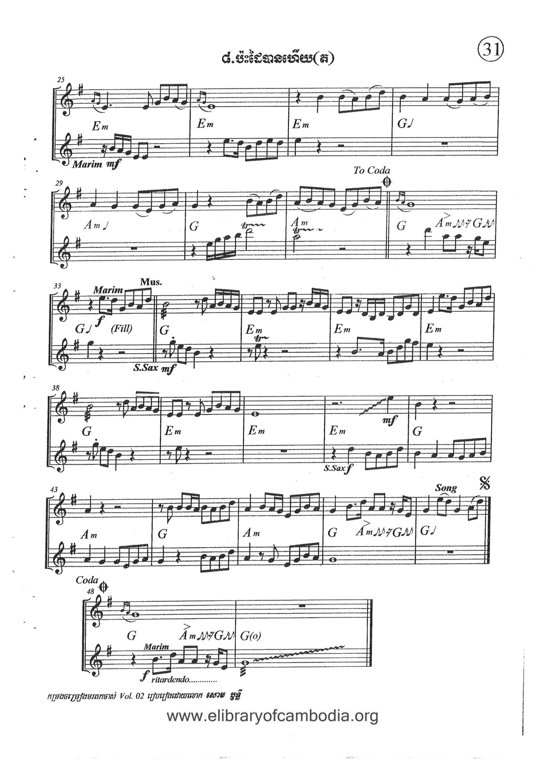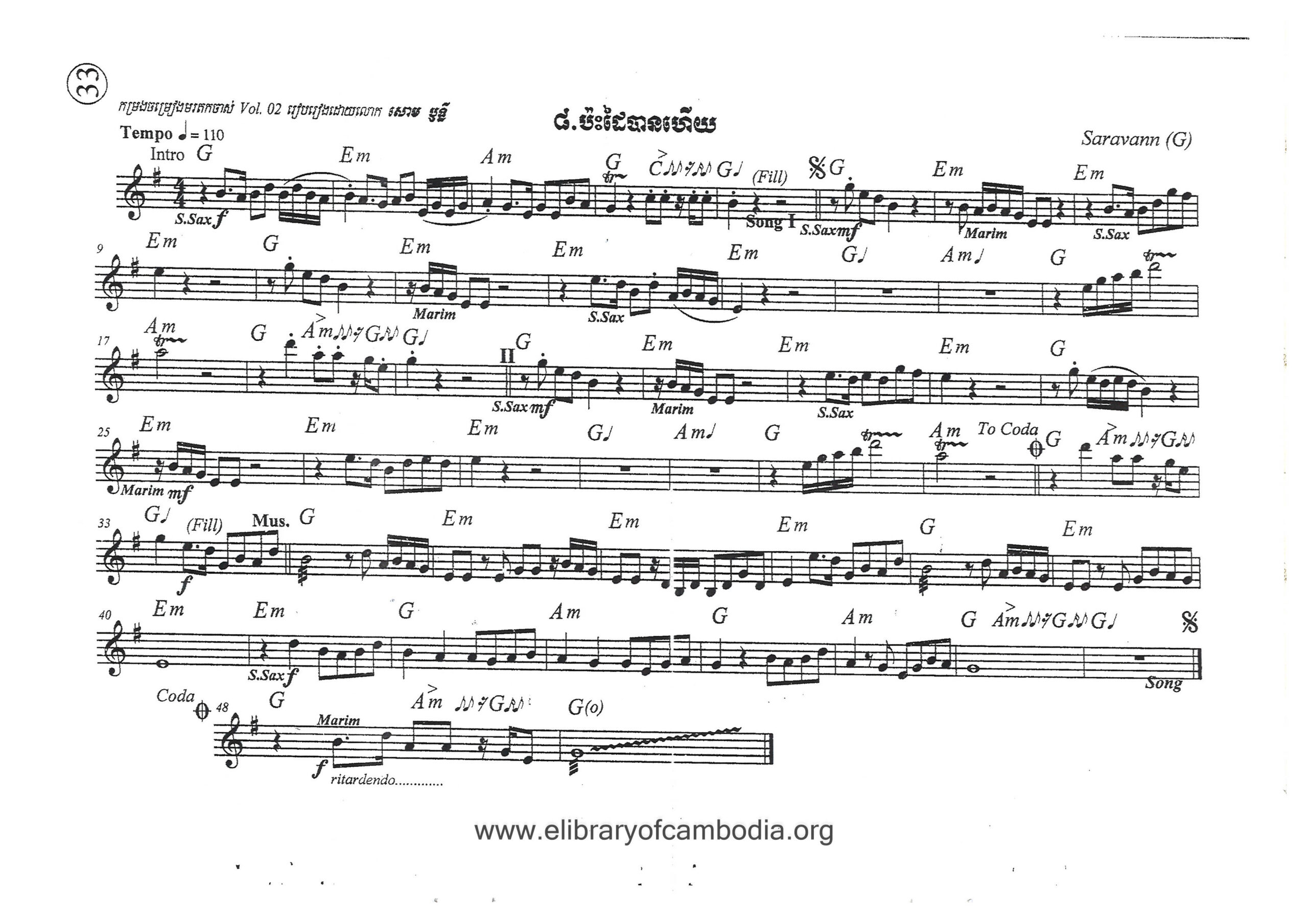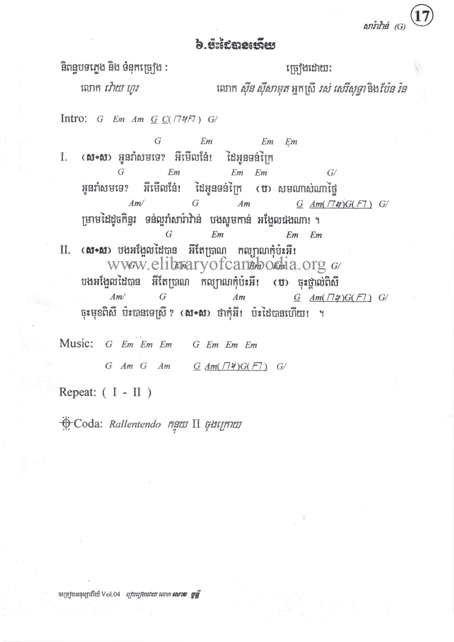 - យើងមានអត្ថបទ និងអក្សរភ្លេង ដកស្រង់ចេញពីសៀវភៅ រៀនលេងបទចម្រៀងដោយខ្លួនឯង- ប៉ះដៃបានហើយ ទំព័រទី ៣៣