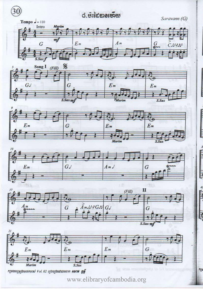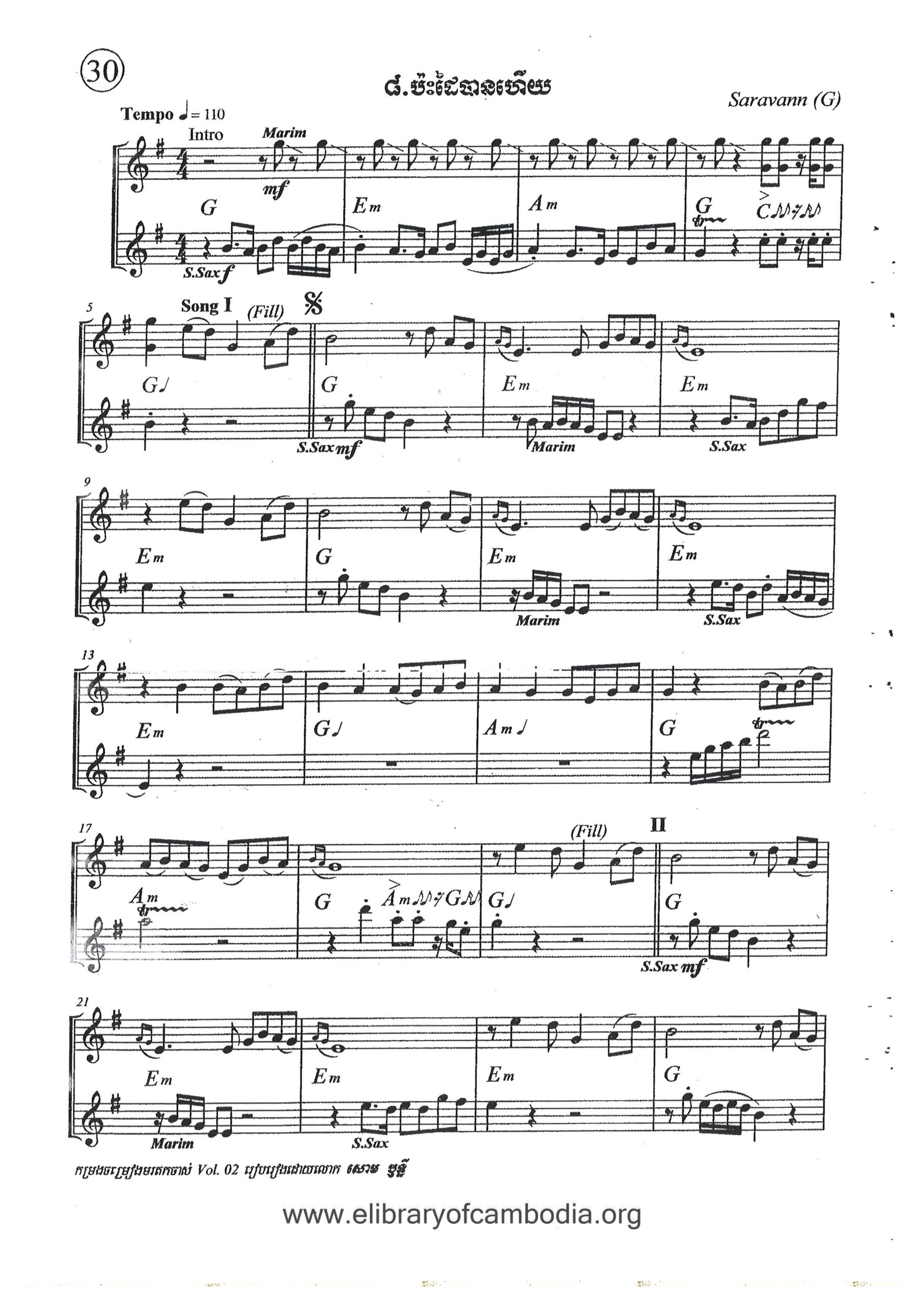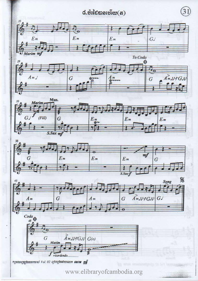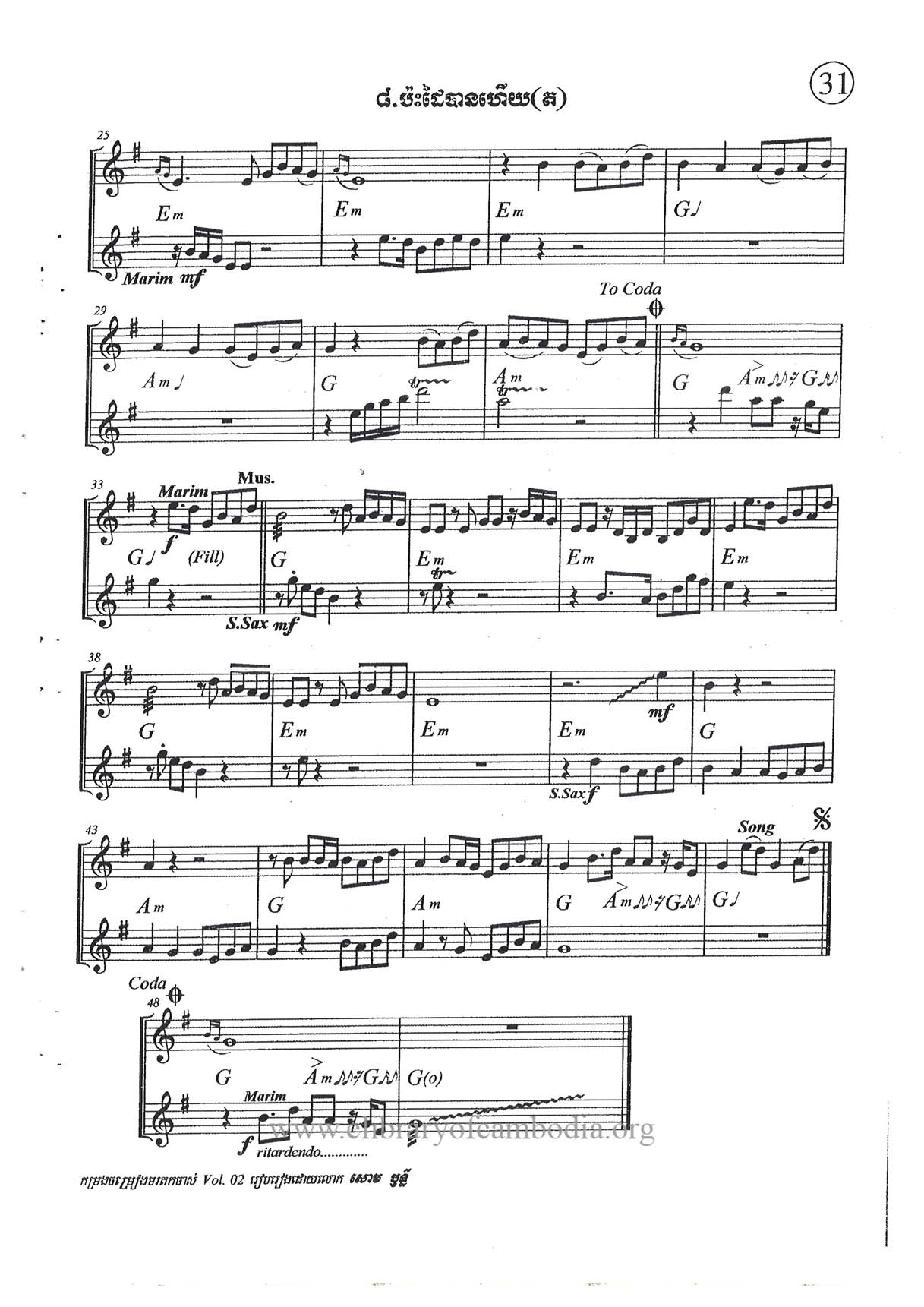 - យើងមានអត្ថបទ និងអក្សរភ្លេង ដកស្រង់ចេញពីសៀវភៅ រៀនលេងបទចម្រៀងដោយខ្លួនឯង- ប៉ះដៃបានហើយ ទំព័រទី ៣៣