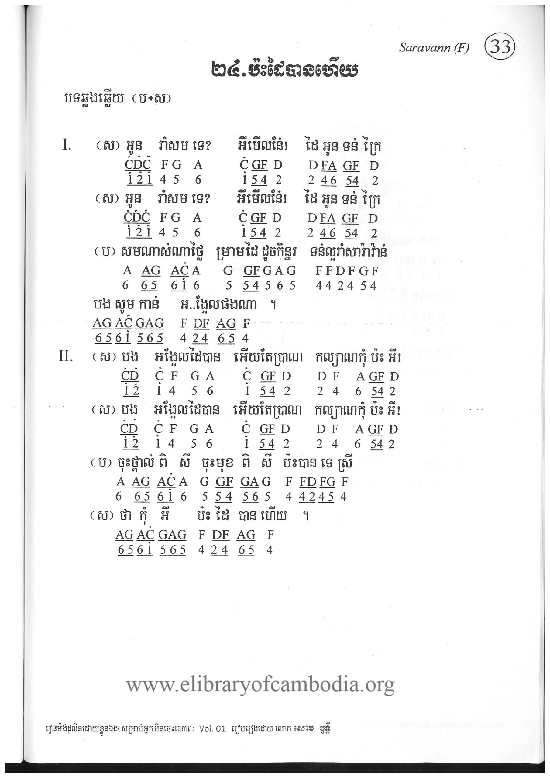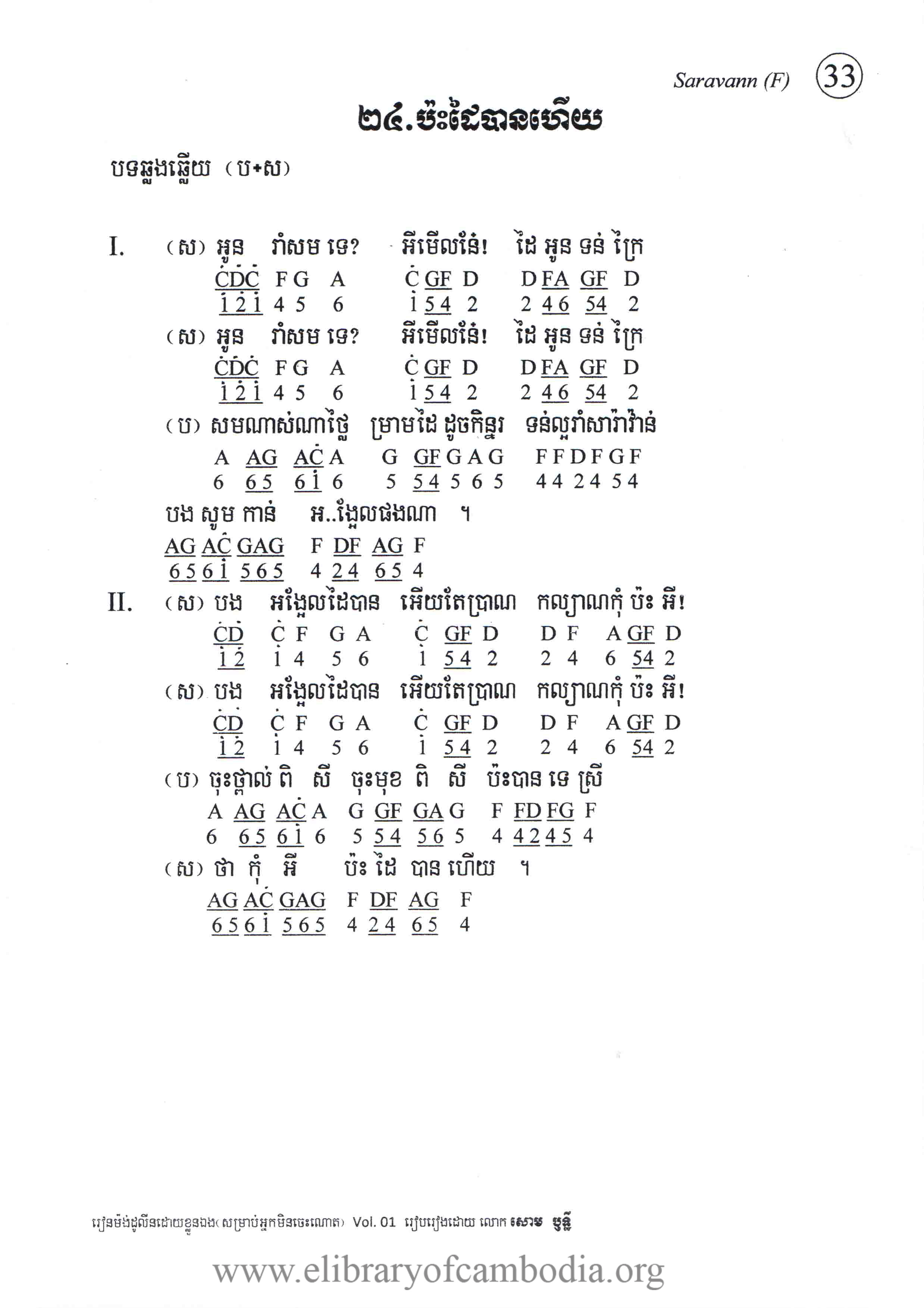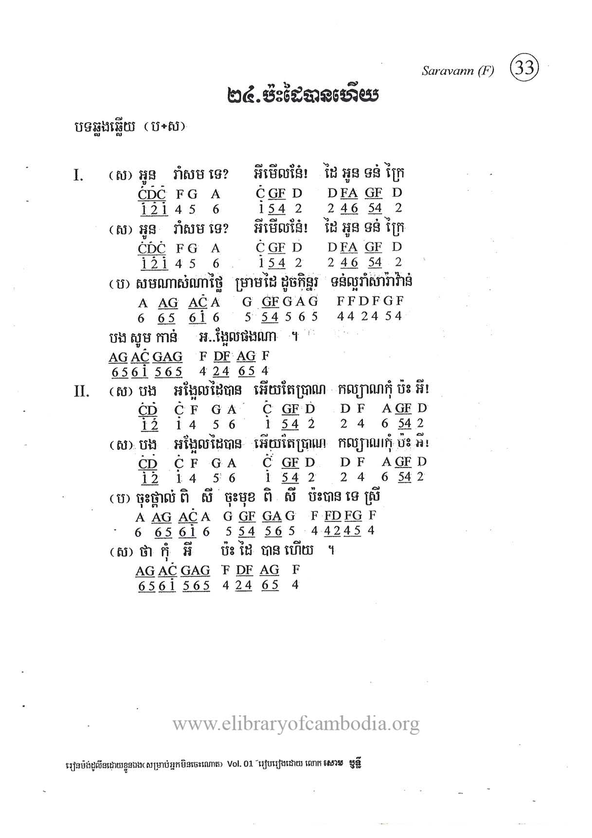 - យើងមានអត្ថបទ និងអក្សរភ្លេង ដកស្រង់ចេញពីសៀវភៅ ម៉ង់ដូលីន-ប៉ះដៃបានហើយ ទំព័រទី ៣៣
