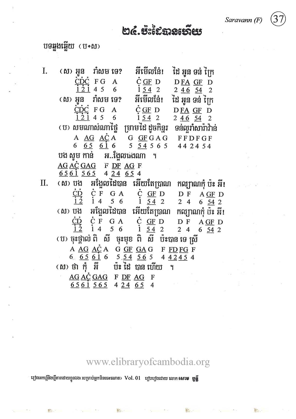 - យើងមានអត្ថបទ និងអក្សរភ្លេង ដកស្រង់ចេញពីសៀវភៅ ចម្រៀងសម័យចម្រុះ Vol.01-ប៉ះដៃបានហើយ.jpg ទំព័រទី ៣៧