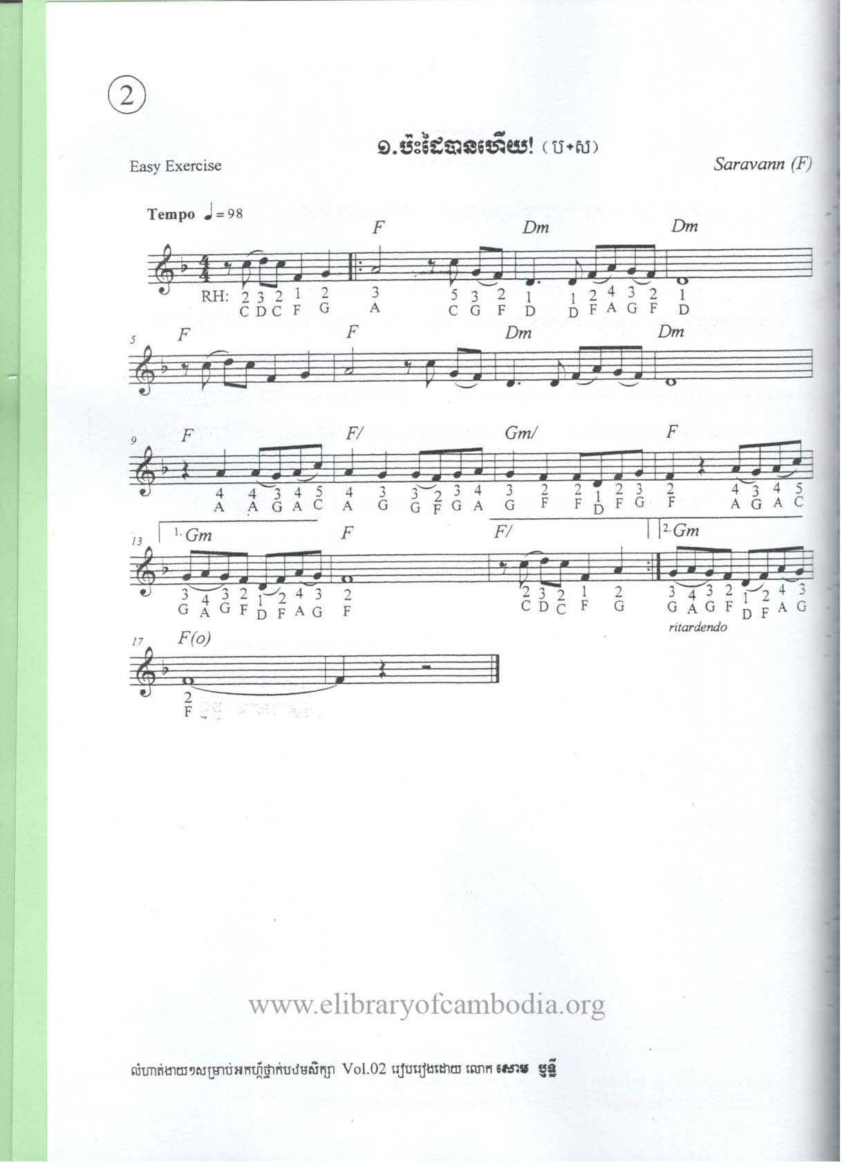 - ចេញផ្សាយនៅលើសៀវភៅ រៀនលេងព្យ៉ាណូ ណោតងាយស្រួល វគ្គទី២ - ប៉ះដៃបានហើយ - អត្ថបទចម្រៀង - អក្សរភ្លេង ទំព័រទី ២៣