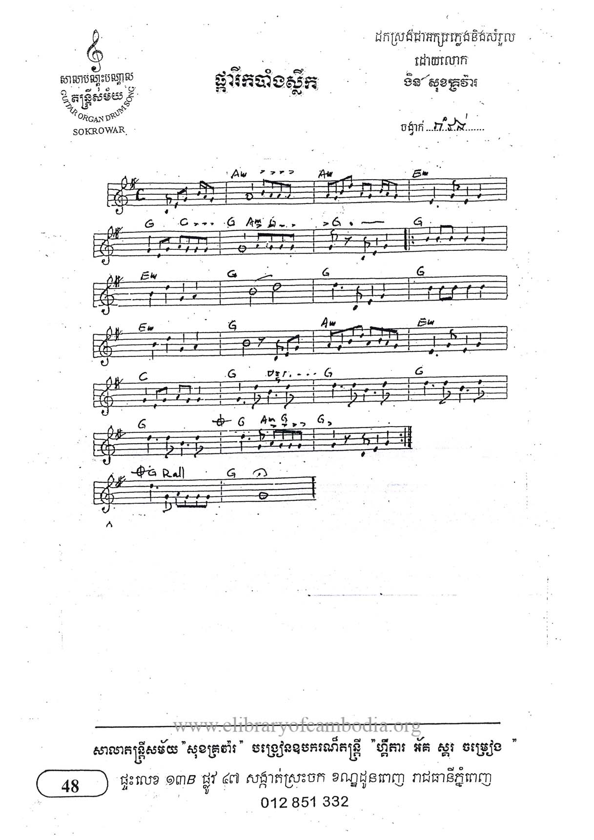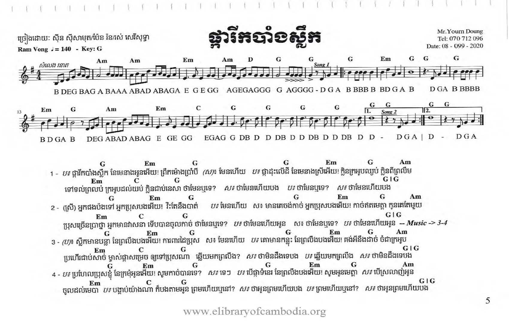- យើងមានអត្ថបទ និងអក្សរភ្លេង ដកស្រង់ចេញពីសៀវភៅ រៀនលេងតន្រ្តី ណោតងាយស្រួល ភាគ១០ ទំព័រទី ៥