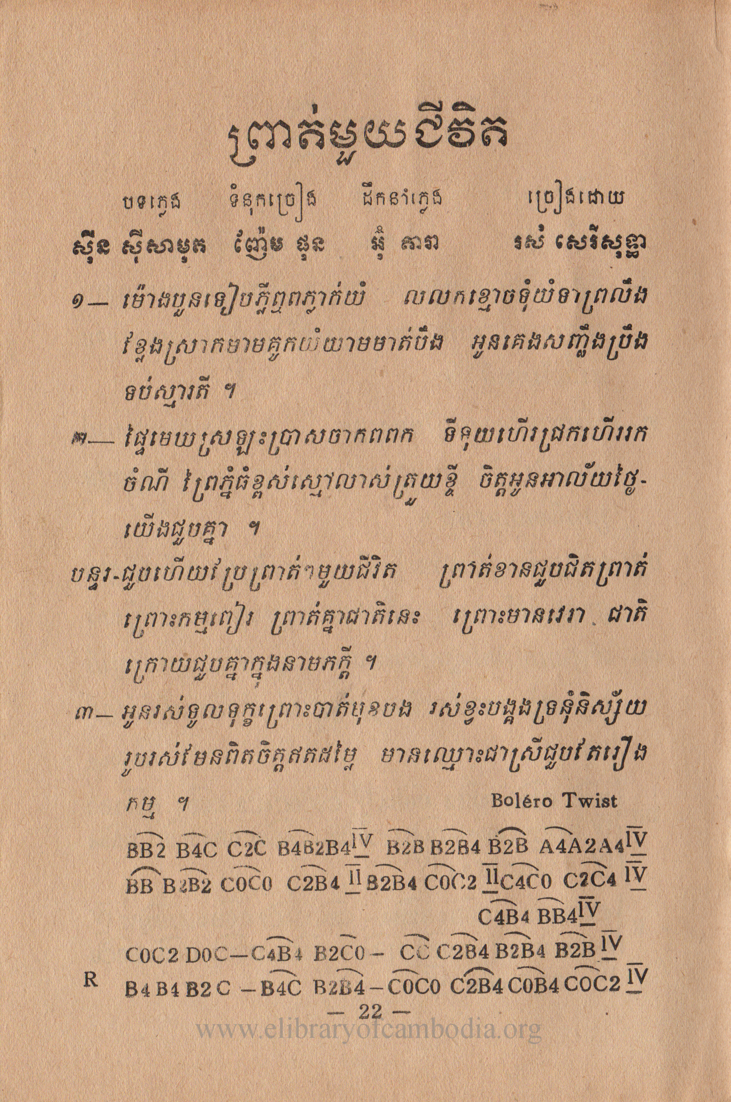 • ព្រាត់មួយជីវិត ជាបទចម្រៀងដើម មុនថ្ងៃ១៧ មេសា ១៩៧៥ ច្រៀងដំបូង ដោយ រស់ សេរីសុទ្ធា