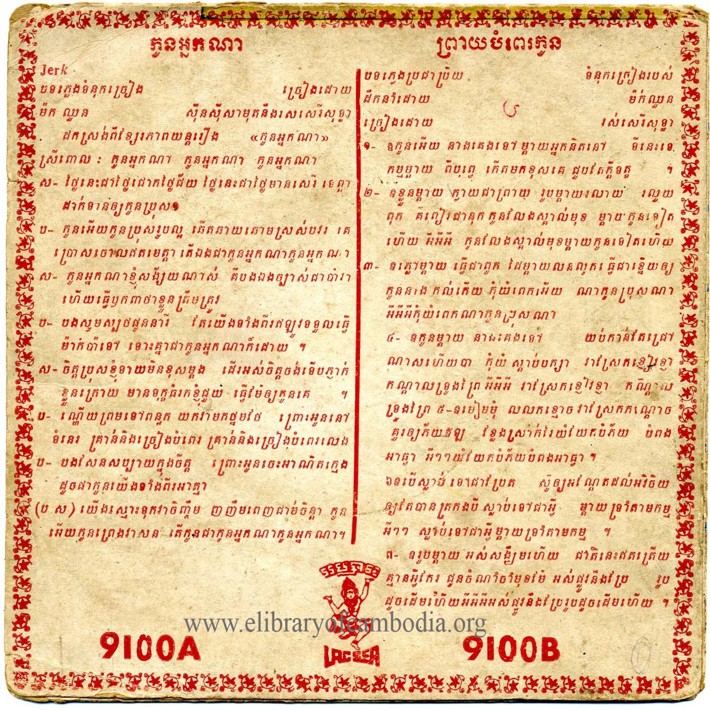 - យើងមានអត្ថបទ និងអក្សរភ្លេង ដកស្រង់ចេញពីសៀវភៅ ប្រជុំចំរៀងភាពយន្ត ១៤០បទ