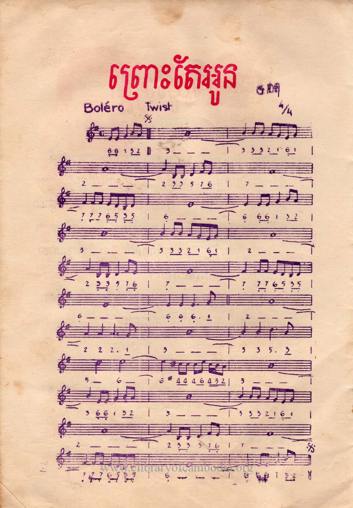 - បទភ្លេង បរទេស (យោងតាមសៀវភៅចម្រៀងតន្រ្តីខ្មែរ-ព្រោះតែអូន)