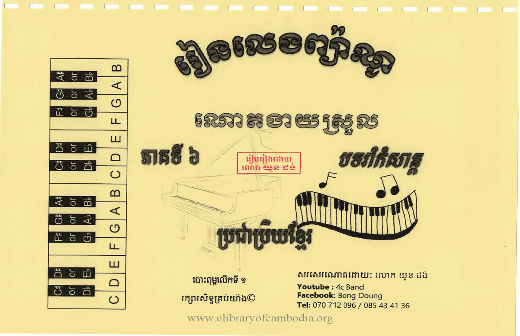 - យើងមានអត្ថបទ និងអក្សរភ្លេង ដកស្រង់ចេញពីសៀវភៅ រៀនលេងព្យ៉ាណូ ណោតងាយស្រួល ភាគទី៦- ក្របមុខ ទំព័ទី៤១