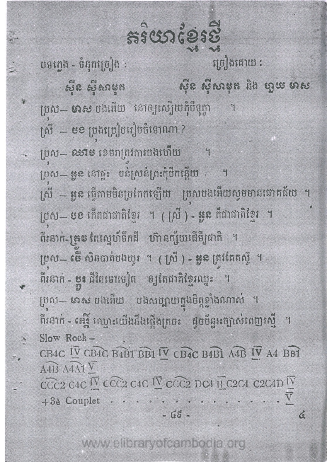 យើងមានតែឯកសារនៅលើ សៀវភៅចម្រៀង តែអត់មានសំឡេងអ្នកច្រៀង