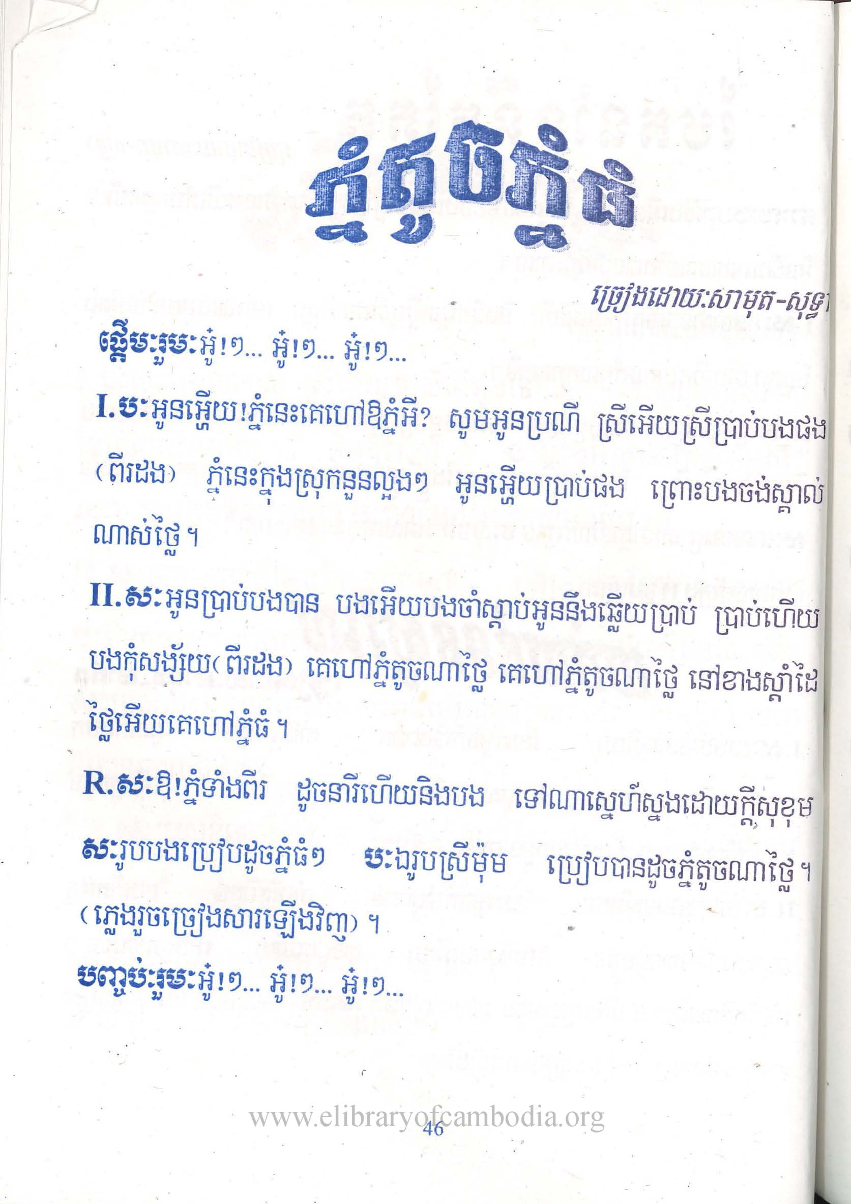 ៣ - (ប) ឱ!ភ្នំទាំងពីរ ដូចនារីហើយនិងបង ទៅណាត្រសង ស្នេហ៍ស្នងដោយក្ដីសុខុម (២ដង)