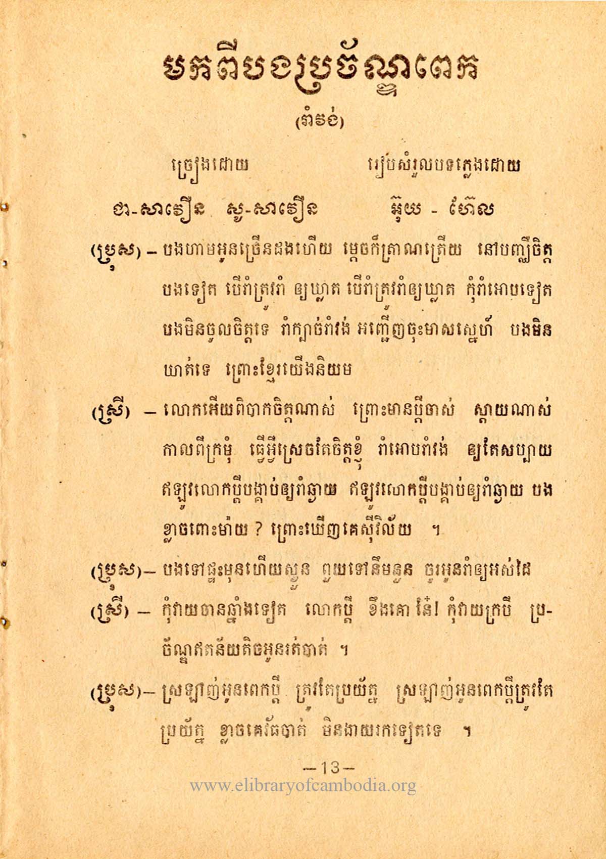 • យើងមានអត្ថបទ ដកស្រង់ចេញពីសៀវភៅ ចម្រៀងខ្ញុំសែនពេញចិត្ត ទំព័រទី​ ១៣