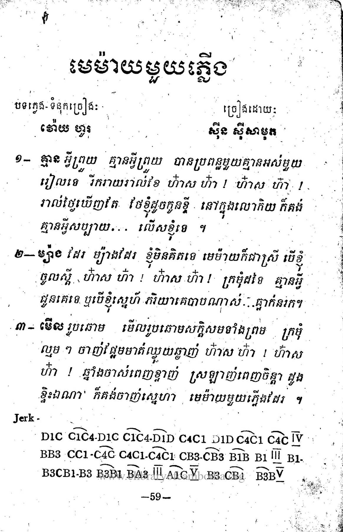 - យើងមានអត្ថបទ និងអក្សរភ្លេង ដកស្រង់ចេញពីសៀវភៅ មរតចម្រៀងភាគ២ ទំព័រទី ៩