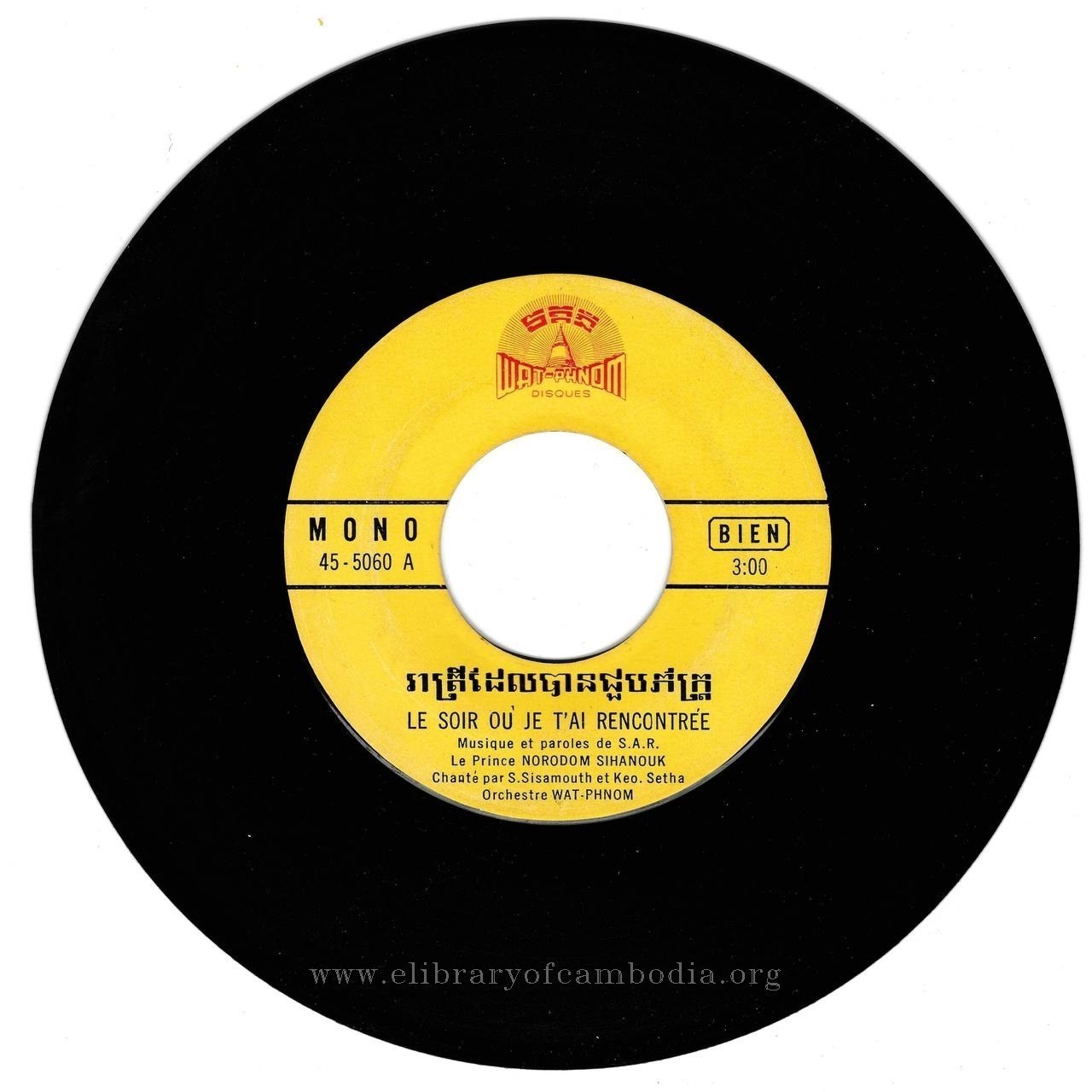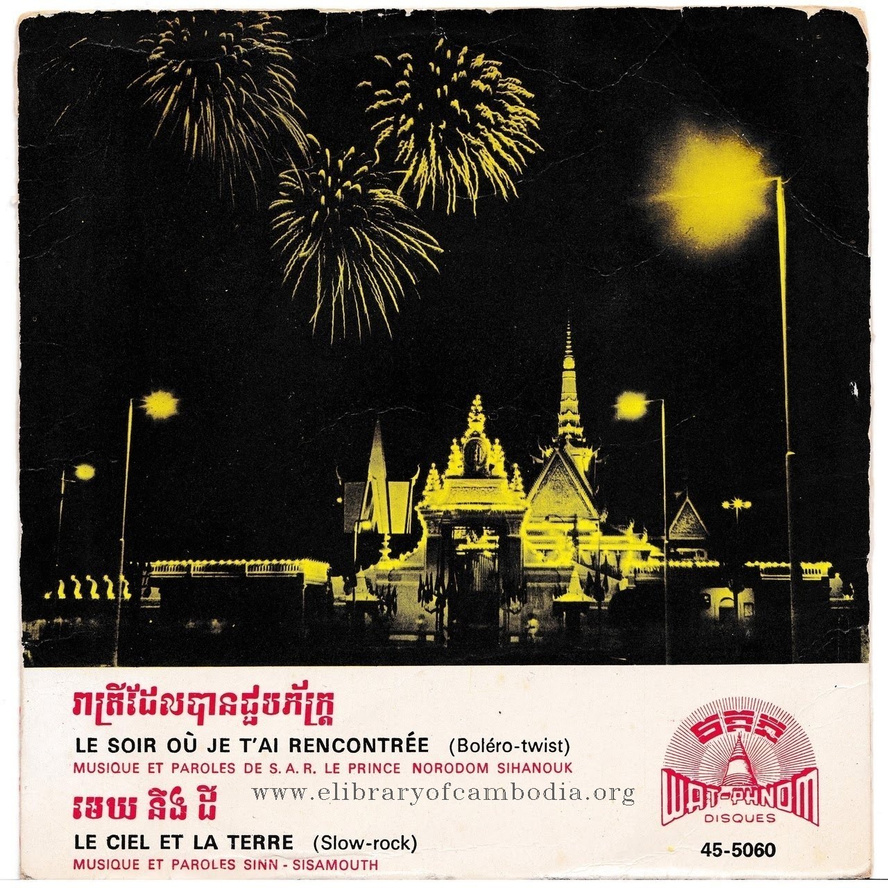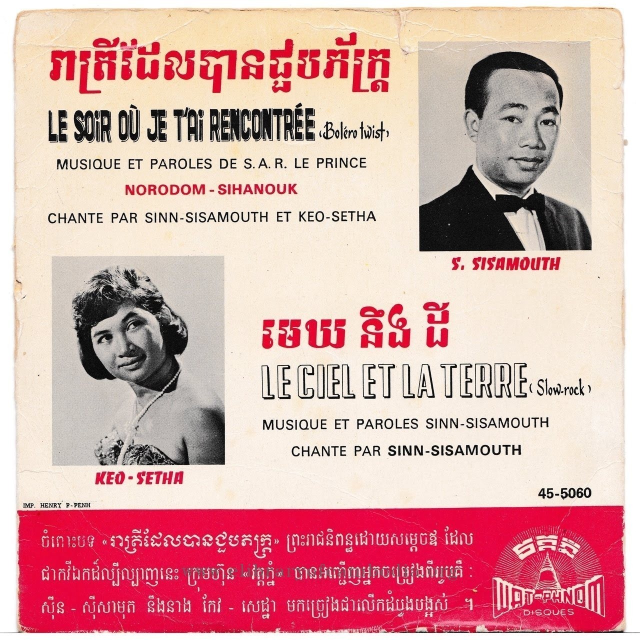 - ចេញផ្សាយជាថាស (Vinyl) ដោយក្រុមហ៊ុន វត្តភ្នំ-45-5060-A-រាត្រីដែលបានជួបភ័ក្រ្ត - (B) មេឃនឹងដី - ក្របក្រោយ