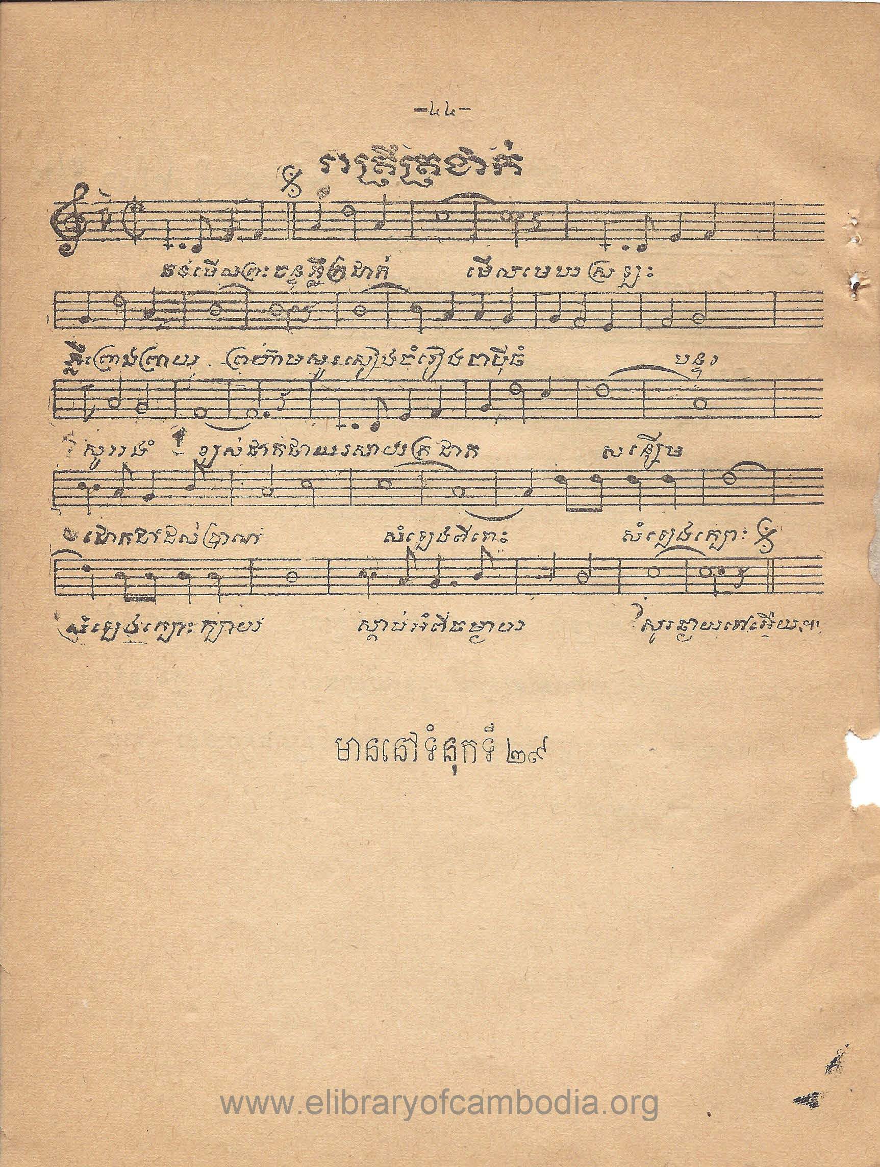 - រាត្រីត្រជាក់ ជាបទចម្រៀងដើម មុនថ្ងៃ១៧ មេសា ១៩៧៥ ច្រៀងដំបូង ដោយ ប៉ែន រ៉ន