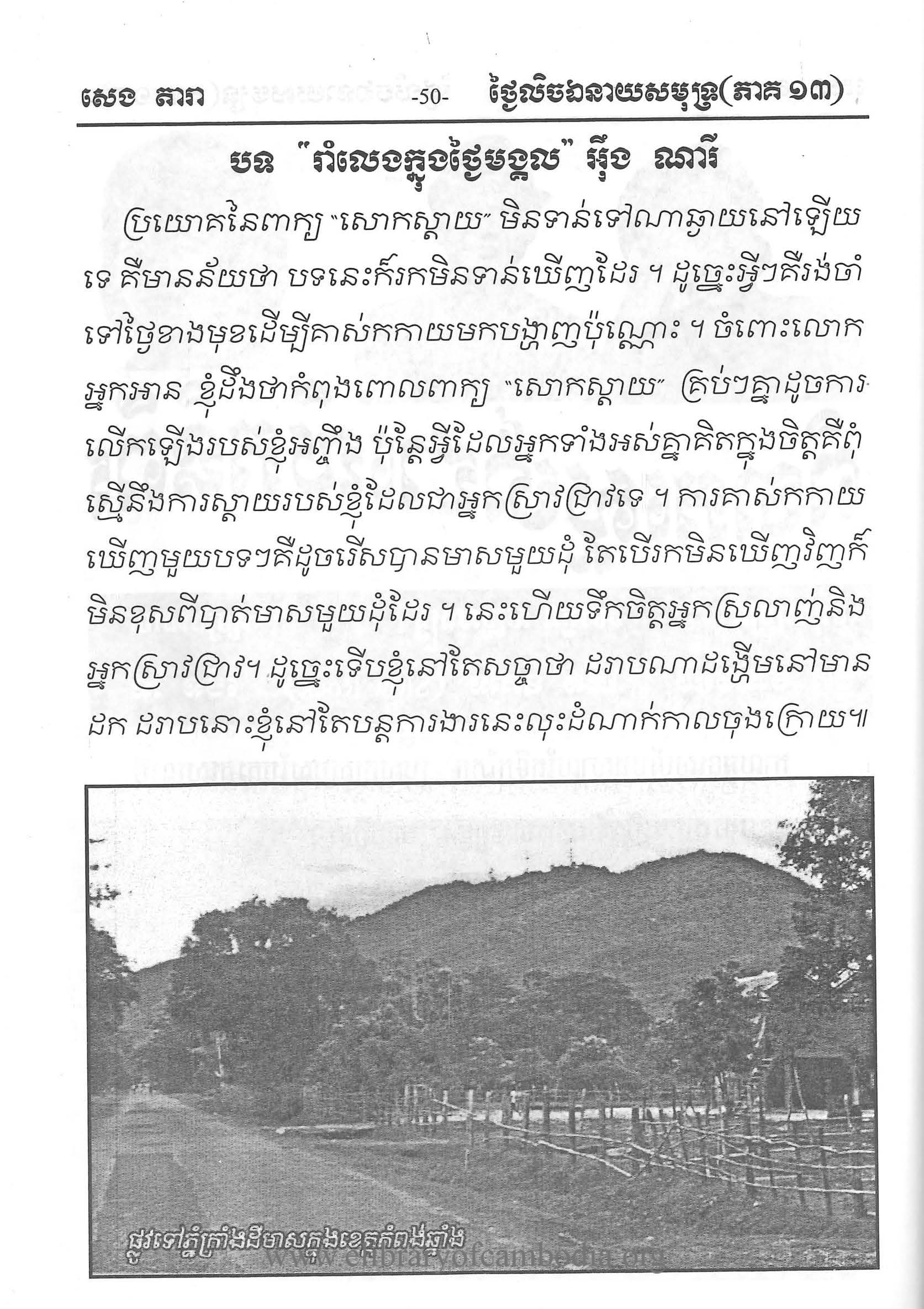 - ចេញផ្សាយនៅលើសៀវភៅ ថ្ងៃលិចឯនាយសមុទ្រ ភាគទី ១៣