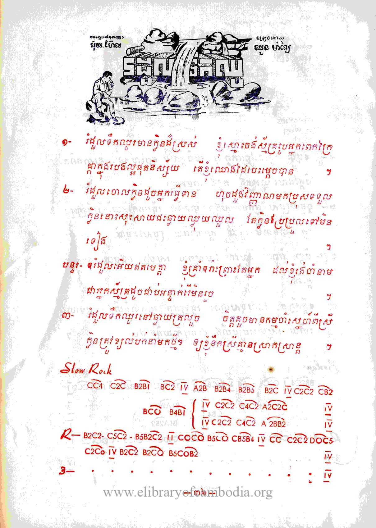 យើងមានតែឯកសារនៅលើ សៀវភៅចម្រៀង តែអត់មានសំឡេងអ្នកច្រៀង