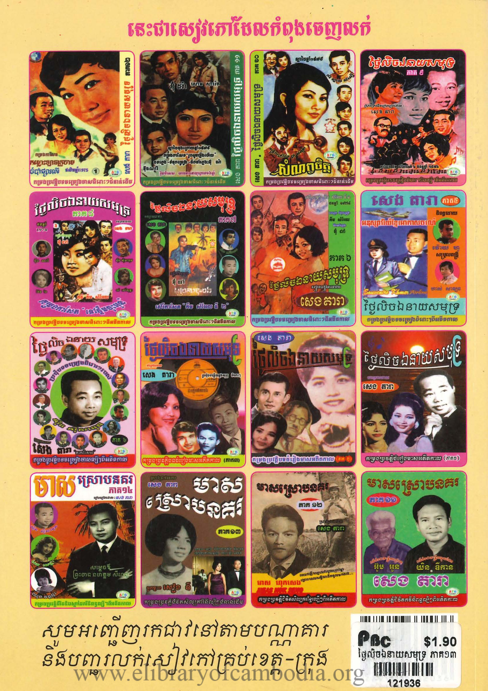 យើងខ្ញុំមានបំណងរក្សាសម្បត្តិខ្មែរទុកនៅលើគេហទំព័រ www.elibraryofcambodia.org នេះ ព្រមទាំងផ្សព្វផ្សាយសម្រាប់បម្រើជាប្រយោជន៍សាធារណៈ ដោយឥតគិតរក និងយកកម្រៃ នៅមុនថ្ងៃទី១៧ ខែមេសា ឆ្នាំ១៩៧៥ ចម្រៀងខ្មែរបានថតផ្សាយលក់លើថាសចម្រៀង 45 RPM 33 ½ RPM 78 RPM ដោយផលិតកម្ម ថាស កណ្ដឹងមាស ឃ្លាំងមឿង ចតុមុខ ហេងហេង សញ្ញាច័ន្ទឆាយា នាគមាស បាយ័ន ផ្សារថ្មី ពស់មាស ពែងមាស ភួងម្លិះ ភ្នំពេជ្រ គ្លិស្សេ ភ្នំពេញ ភ្នំមាស មណ្ឌលតន្រ្តី មនោរម្យ មេអំបៅ រូបតោ កាពីតូល សញ្ញា វត្តភ្នំ វិមានឯករាជ្យ សម័យអាប៉ូឡូ សាឃូរ៉ា ខ្លាធំ សិម្ពលី សេកមាស ហង្សមាស ហនុមាន ហ្គាណេហ្វូ អង្គរ Lac Sea សញ្ញា អប្សារា អូឡាំពិក កីឡា ថាសមាស ម្កុដពេជ្រ មនោរម្យ បូកគោ ឥន្ទ្រី Eagle ទេពអប្សរ ចតុមុខ ឃ្លោកទិព្វ ខេមរា មេខ្លា សាកលតន្ត្រី មេអំបៅ Diamond Columbo ហ្វីលិព Philips EUROPASIE EP ដំណើរខ្មែរ ទេពធីតា មហាធូរ៉ា ជាដើម។