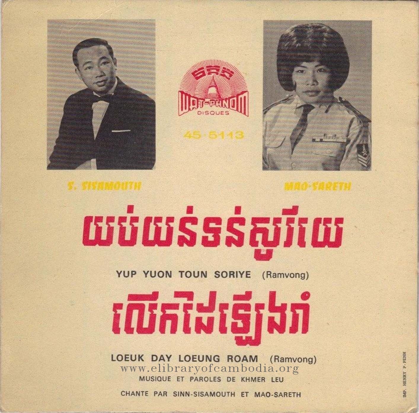 - ចេញផ្សាយជាថាស (Vinyl) ដោយផលិតកម្ម វត្តភ្នំ (45-5113) - (A) លើកដៃឡើងរាំ - ថាស វត្តភ្នំ (45-5113) - (A) យប់យន់ទន់សូរីយេ - (B) លើកដៃឡើងរាំ - ក្របមុខ