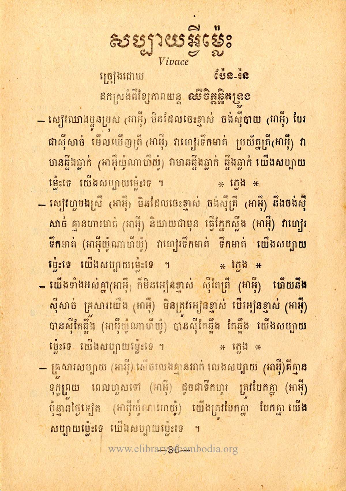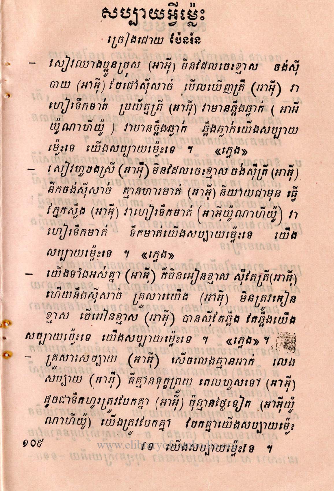 - យើងមានអត្ថបទ ដកស្រង់ចេញពីសៀវភៅ ចម្រៀងខ្ញុំសែនពេញចិត្ត ទំព័រទី 36