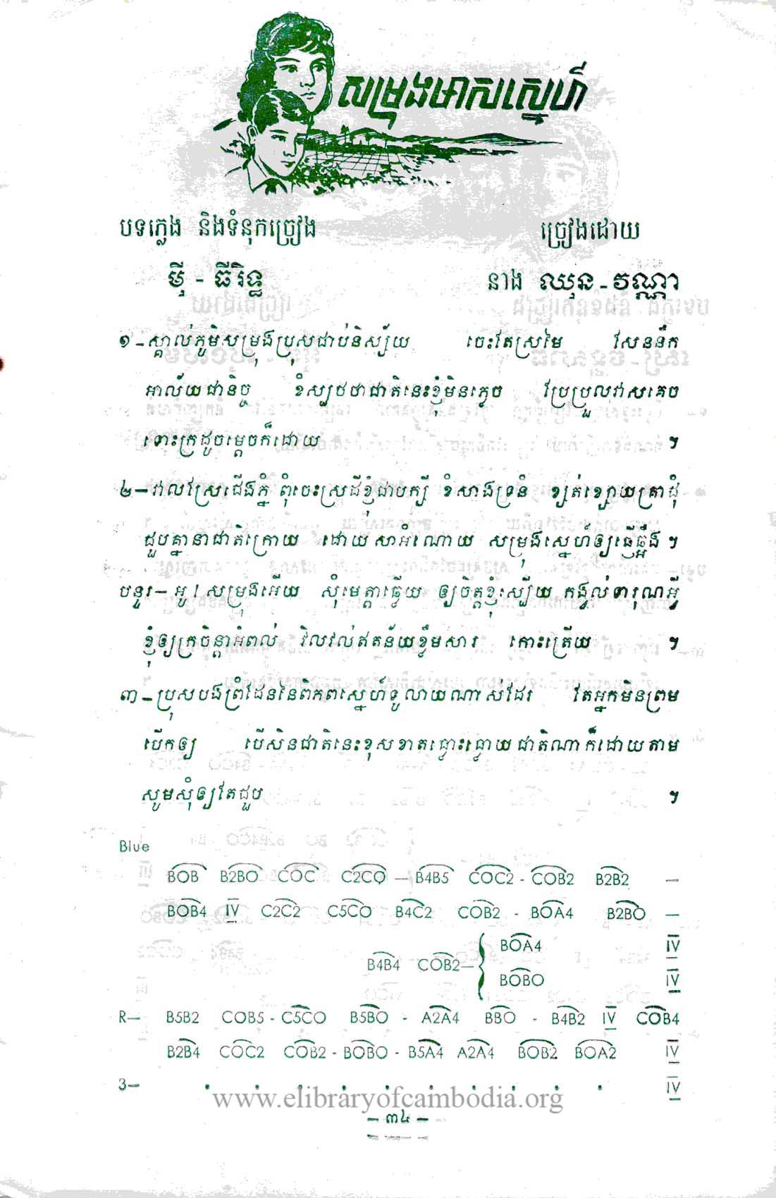 • ចេញផ្សាយនៅលើសៀវភៅចម្រៀង តន្ត្រីវិទ្យុជាតិ - សម្រុងមាសស្នេហ៍ - ក្របមុខ - ក្របក្រោយ