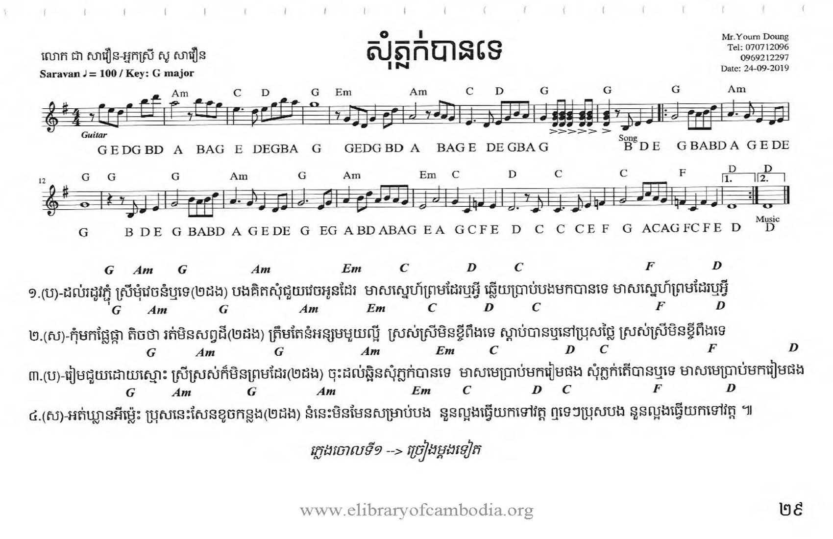 - យើងមានអក្សរភ្លេង ដកស្រង់ចេញពីសៀវភៅ រៀនលេងព្យ៉ាណូ ណោតងាយស្រួល ភាគទី៦- សុំភ្លក់បានទេ-អត្ថបទចម្រៀង និងអក្សរភ្លេង