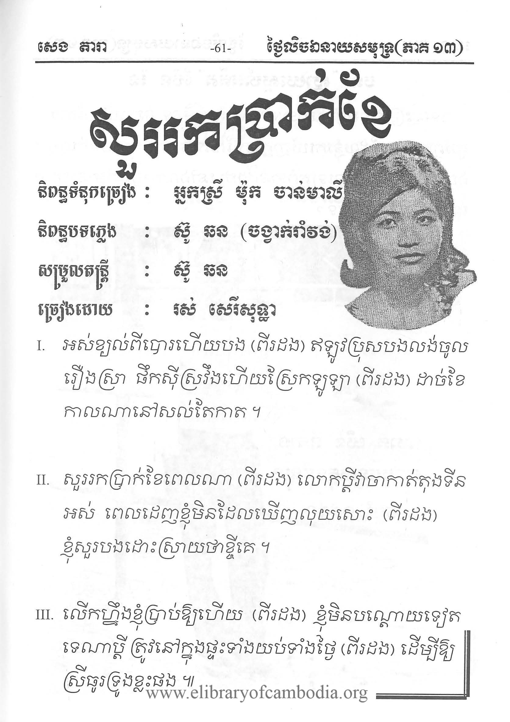 - ច្រៀងដោយ រស់ សេរីសុទ្ធា