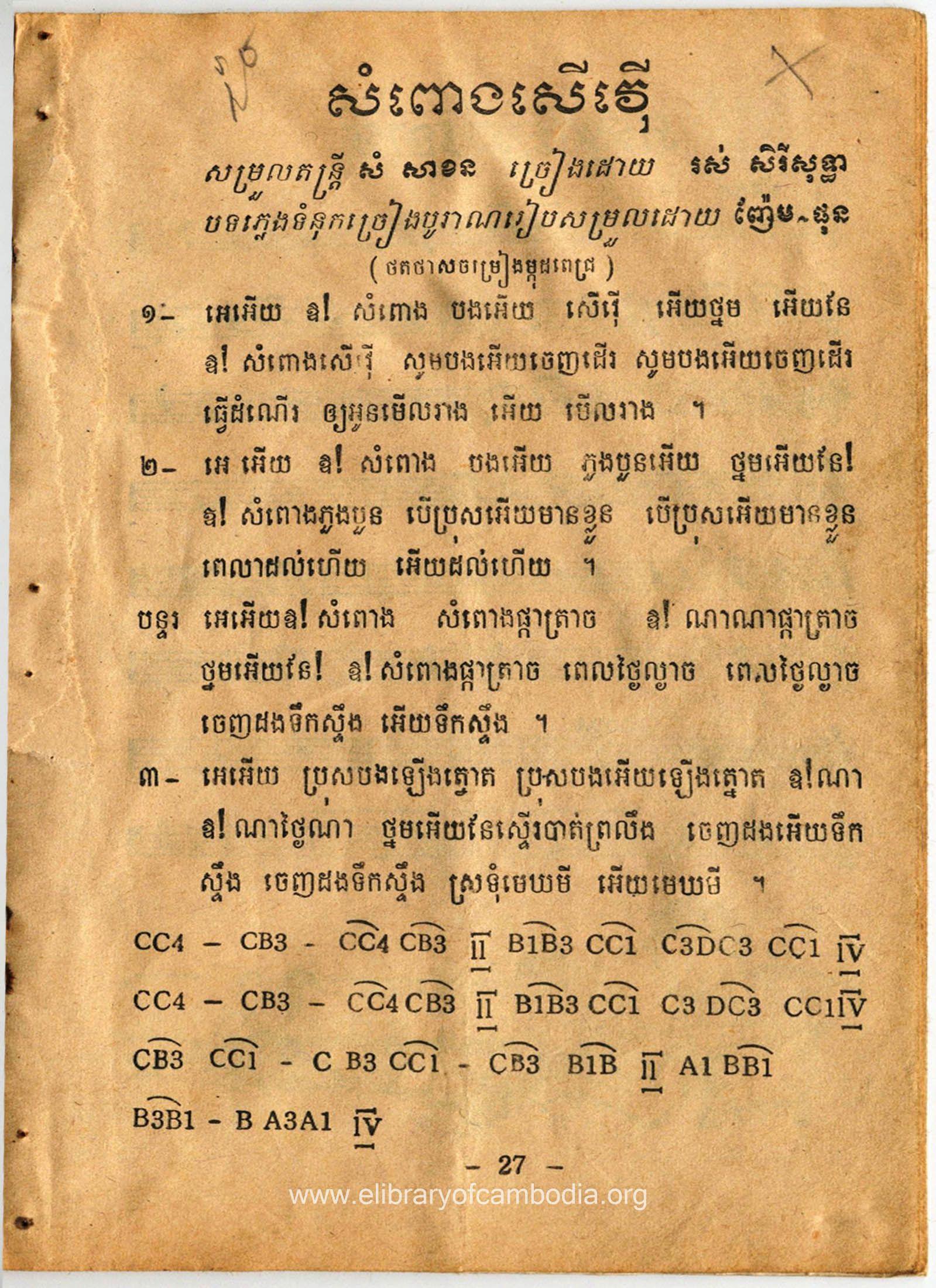 - យើងមានអត្ថបទ ដកស្រង់ចេញពីសៀវភៅ ចម្រៀងសម័យឆ្នាំ72 ទំព័រទី ២៧