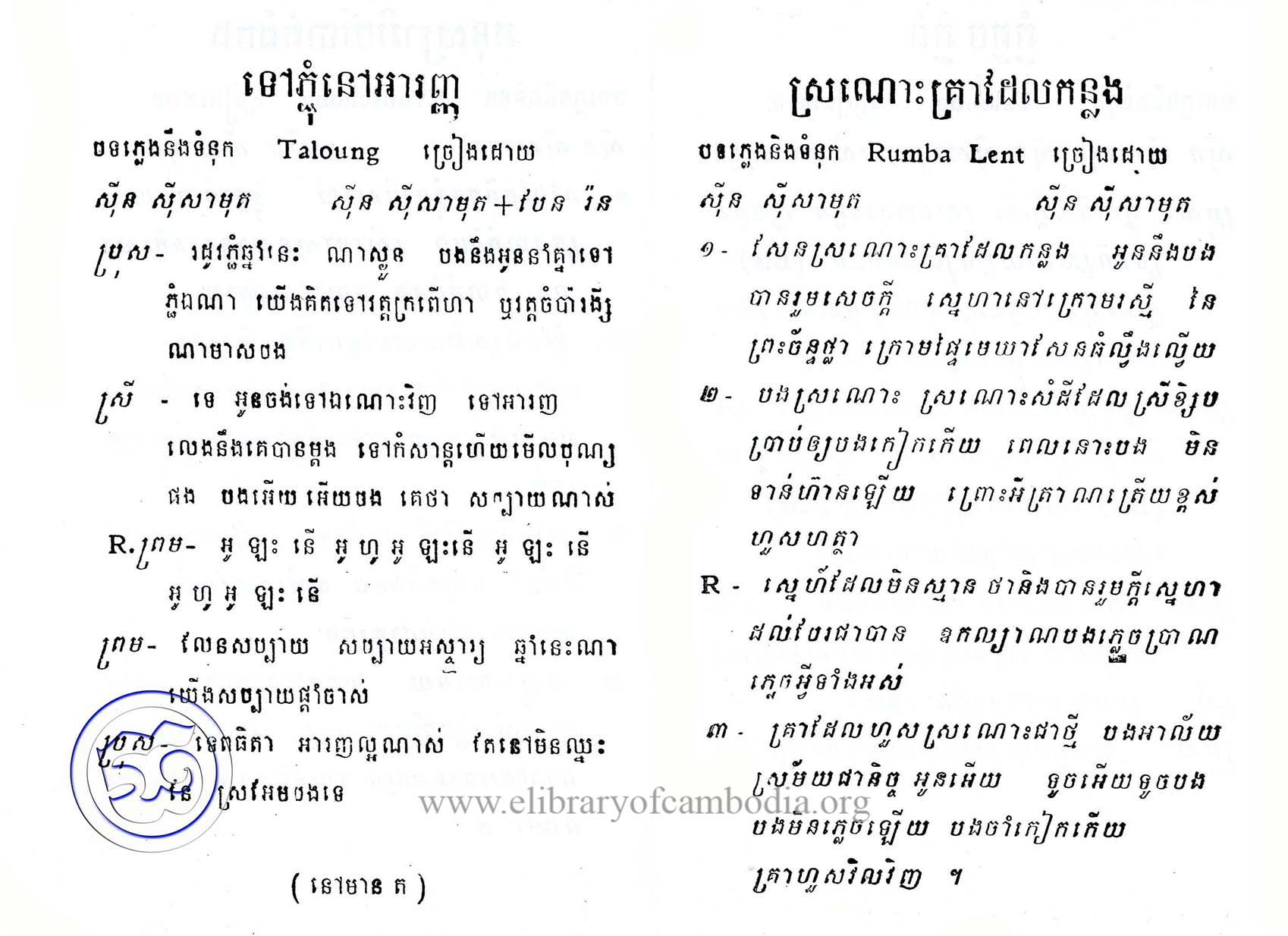 - យើងមានអត្ថបទ ដកស្រង់ចេញពីសៀវភៅ ចំរៀងជ្រើសរើសពិសេស ស៊ីន ស៊ីសាមុត ទំព័រទី ២៥